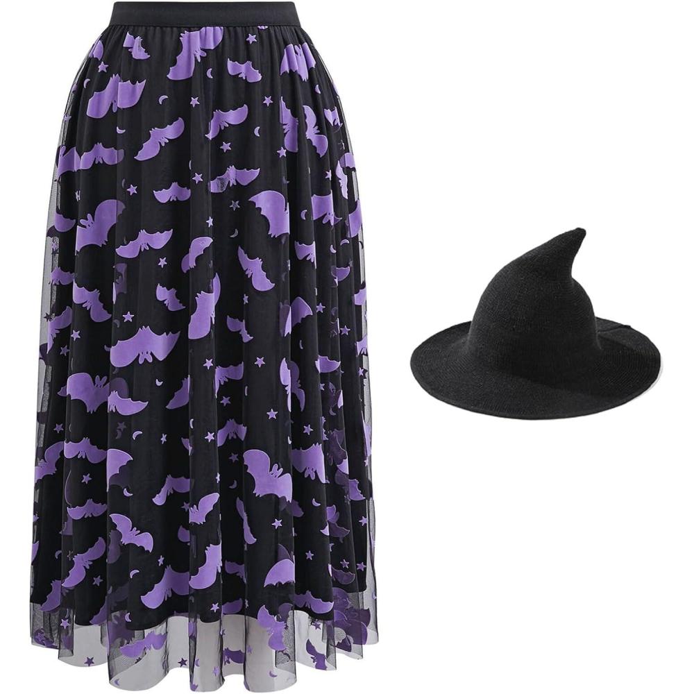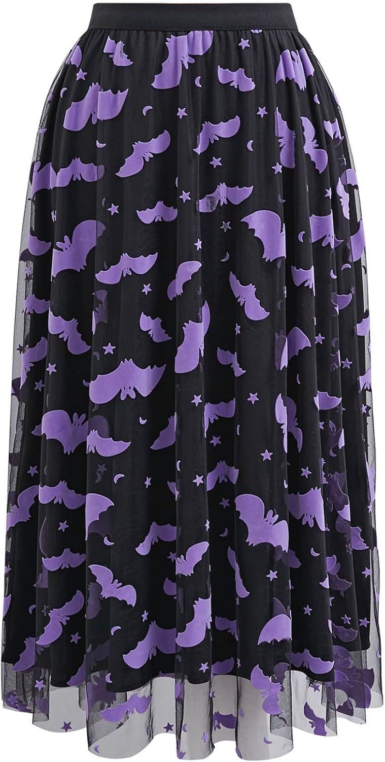 This uniquely crafted skirt features delicate, velvet bats intricately sewn onto a layer of ethereal mesh tulle, creating a mesmerizing dance of shadows and light with every movement. Perfect for themed parties, Halloween soirees, or simply to make a bold fashion statement.
