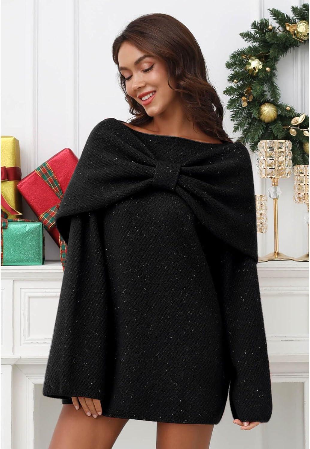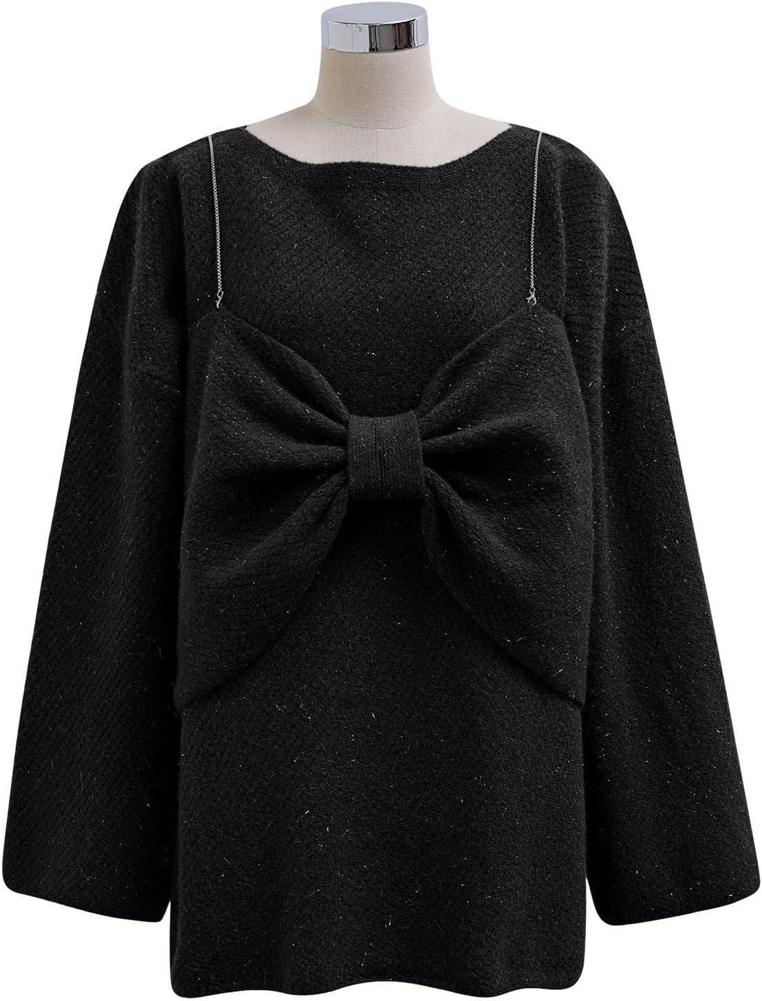 Be the first to review “CHICWISH Women Bowknot 2 Pieces Mini Sweater Dress Boat Neck Long Sleeve Cute Metallic Mix Party Knit Pullover Sweater(Black)”