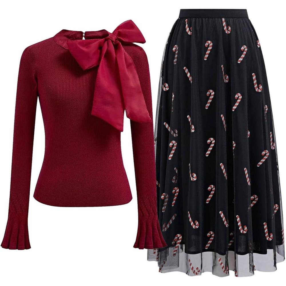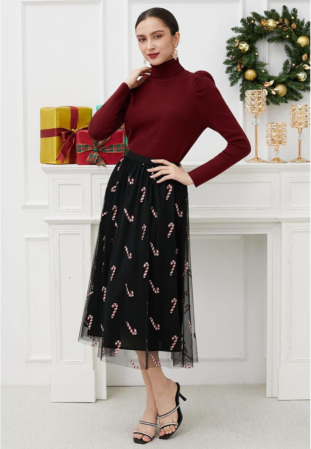 [ Style Details ] Ready to dazzle like a holiday treat? This skirt shimmers with a candy cane sparkle that’s all about festive fun!