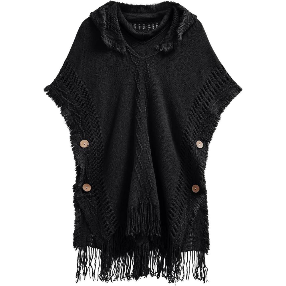 Be the first to review “CHICWISH Women Diamond Pattern Fringe Hooded Poncho Shawl Casual Lightweight Button Decor Knit Pullover Sweater Cape(Black)” Cancel reply