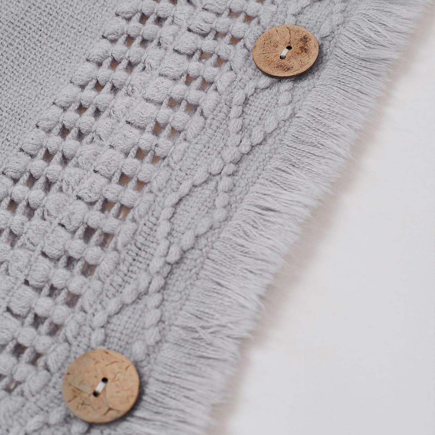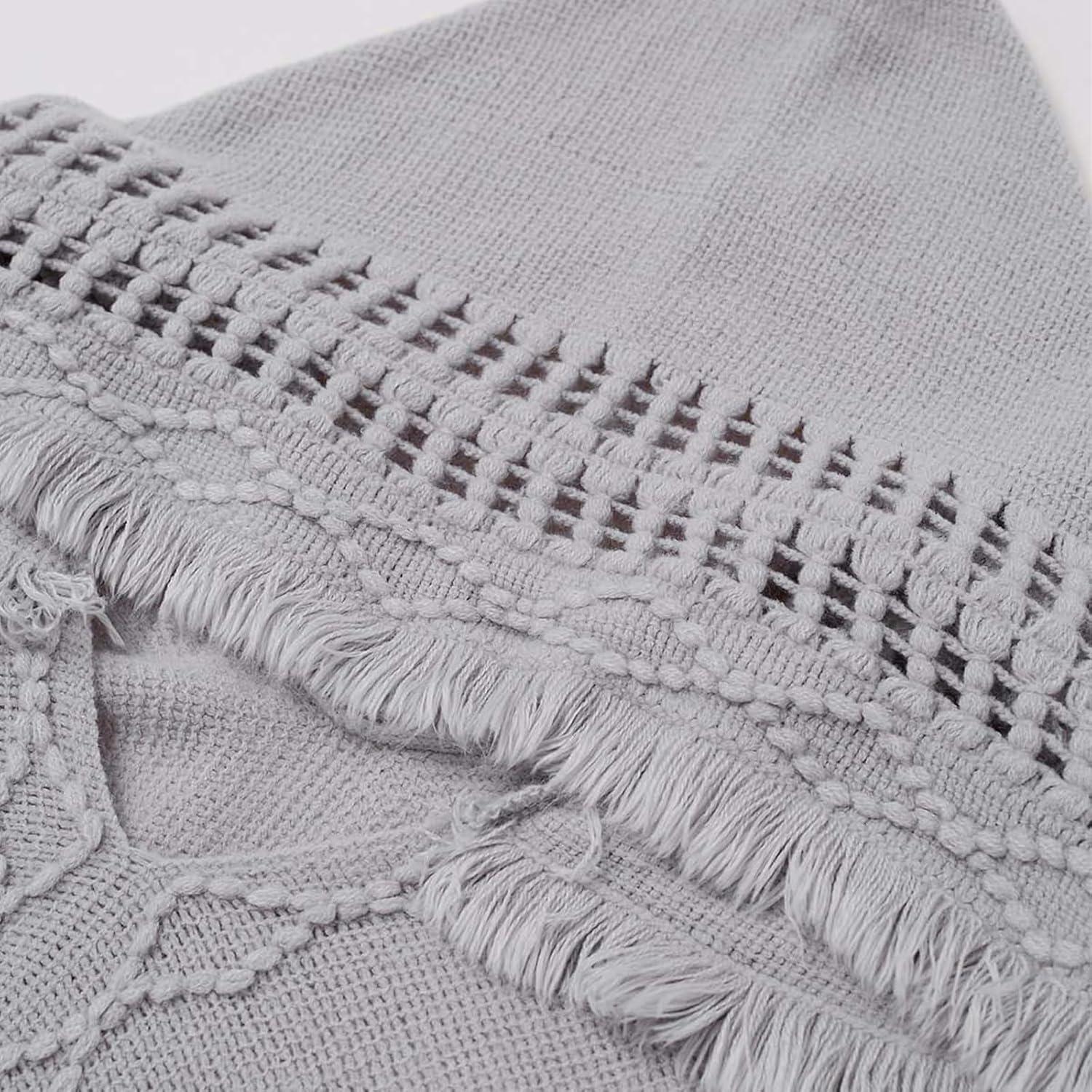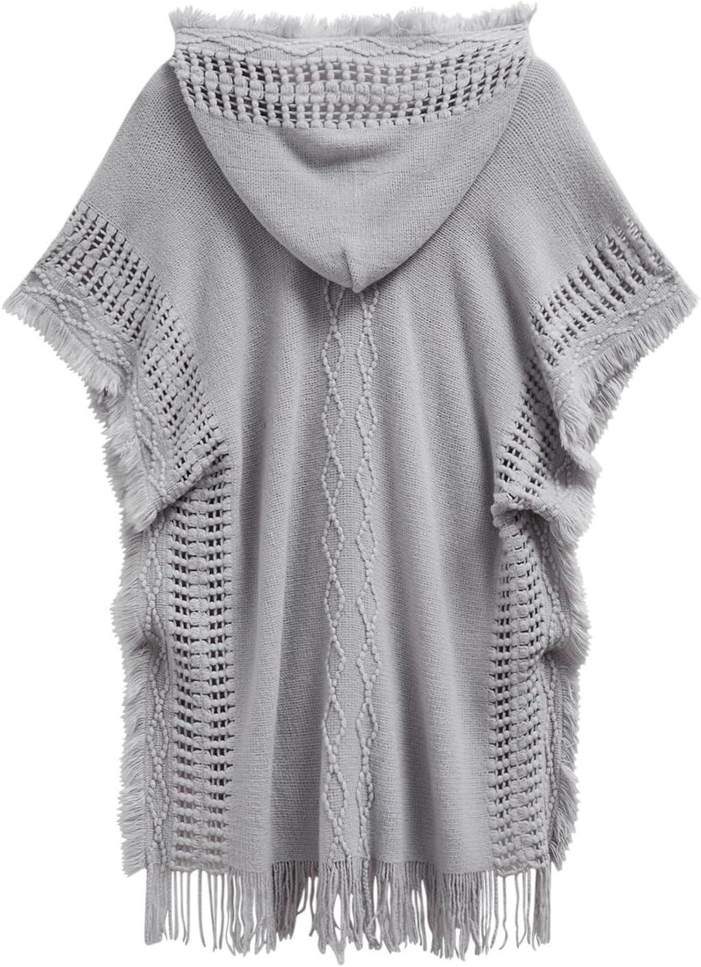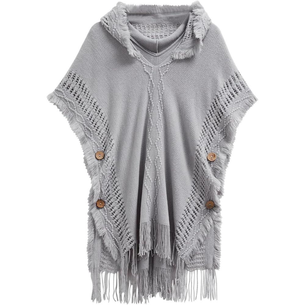 CHICWISH Women Diamond Pattern Fringe Hooded Poncho Shawl Casual Lightweight Button Decor Knit Pullover Sweater Cape(Grey)