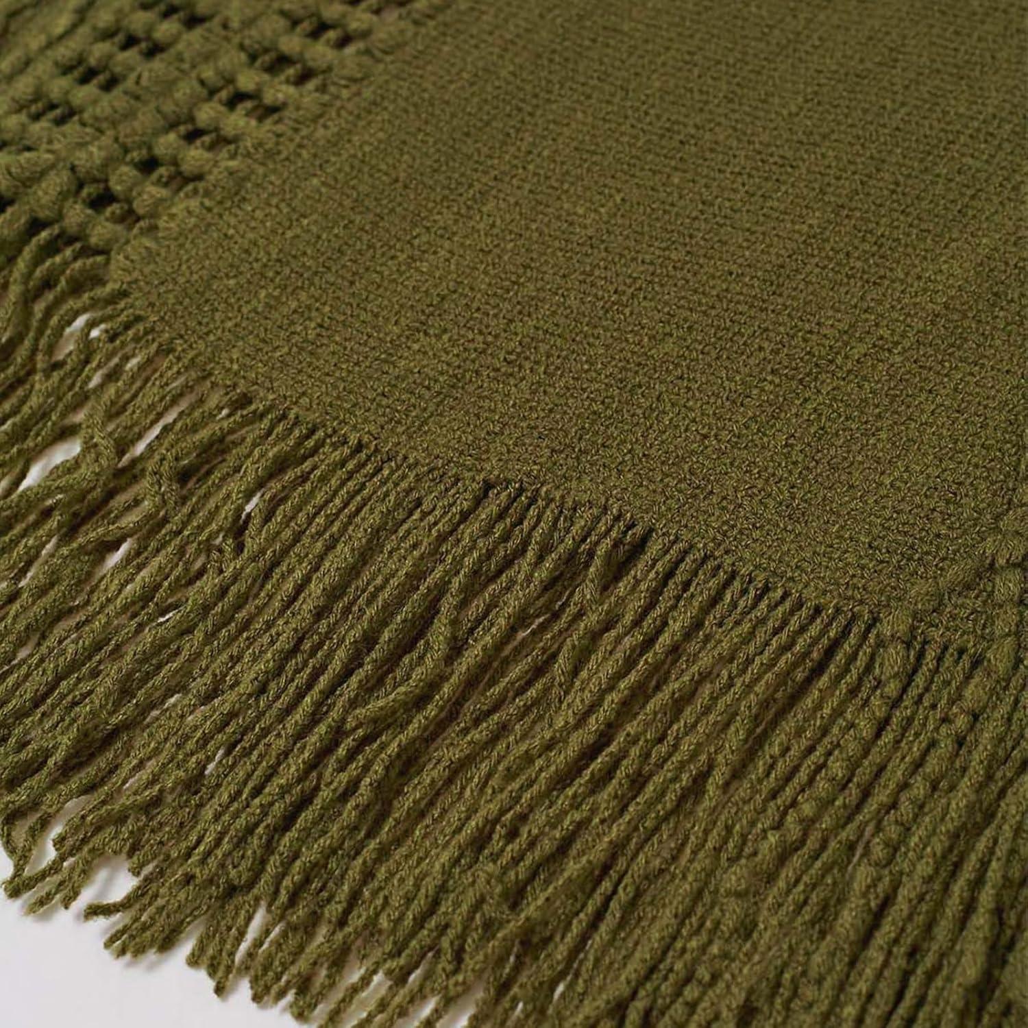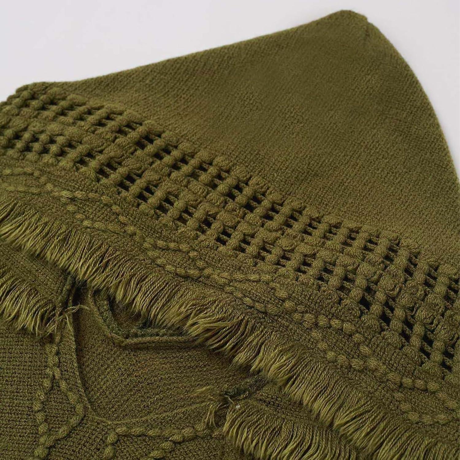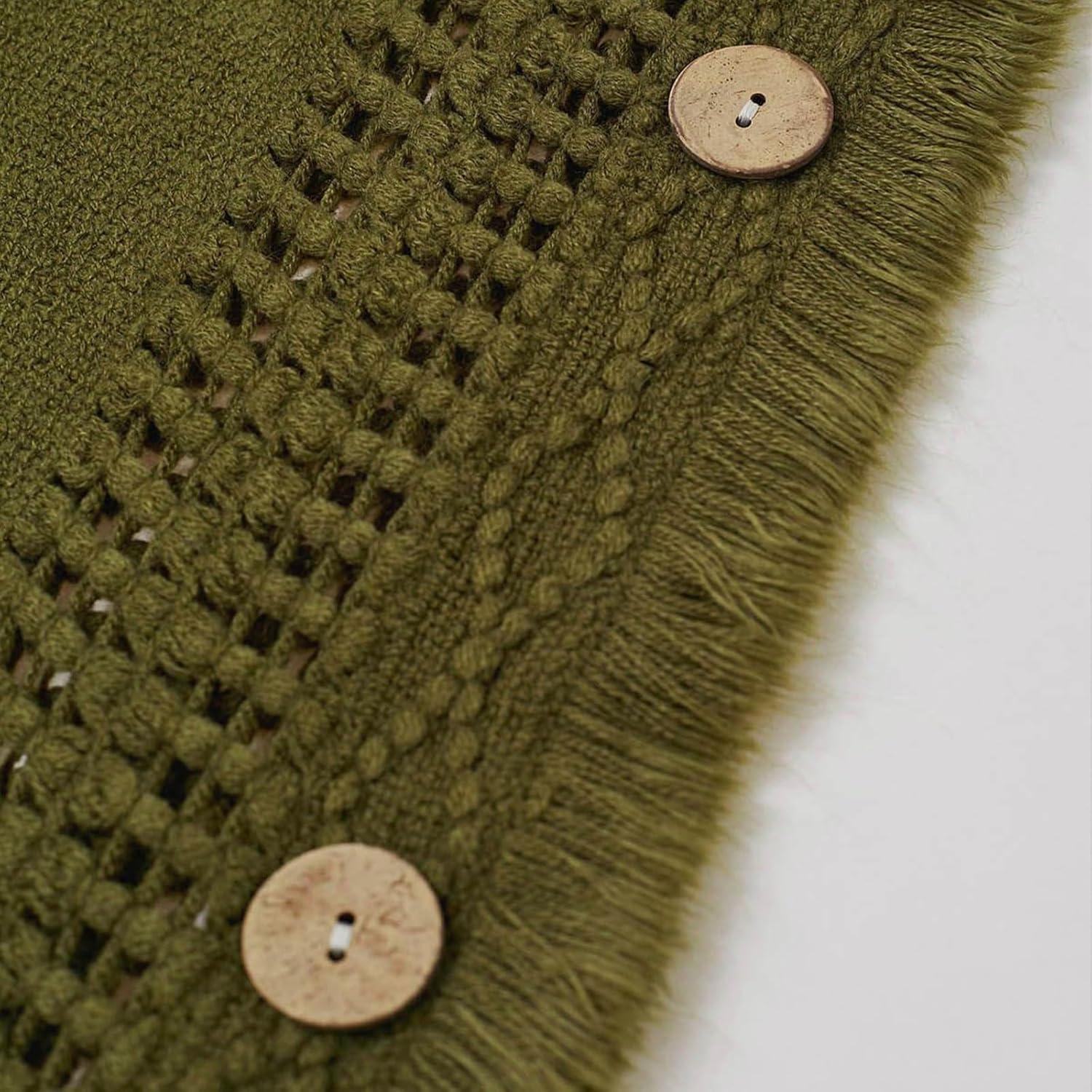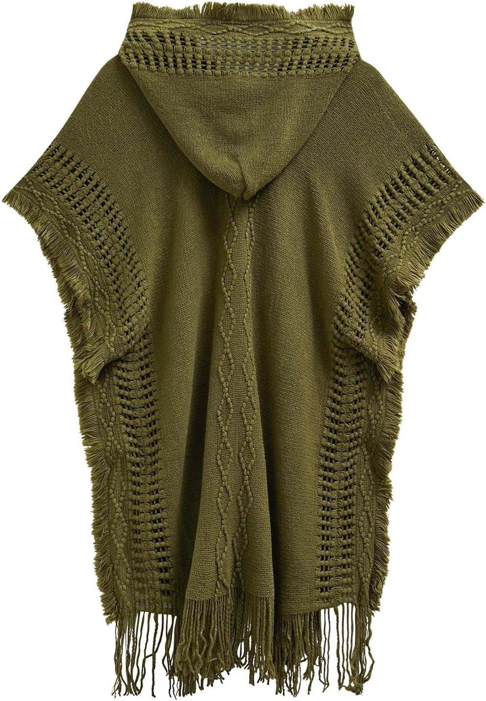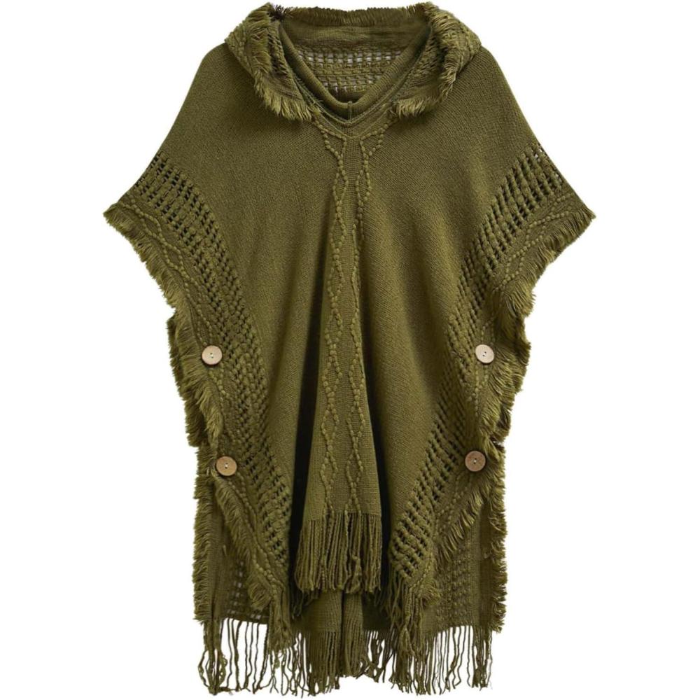 CHICWISH Women Diamond Pattern Fringe Hooded Poncho Shawl Casual Lightweight Button Decor Knit Pullover Sweater Cape(Olive)