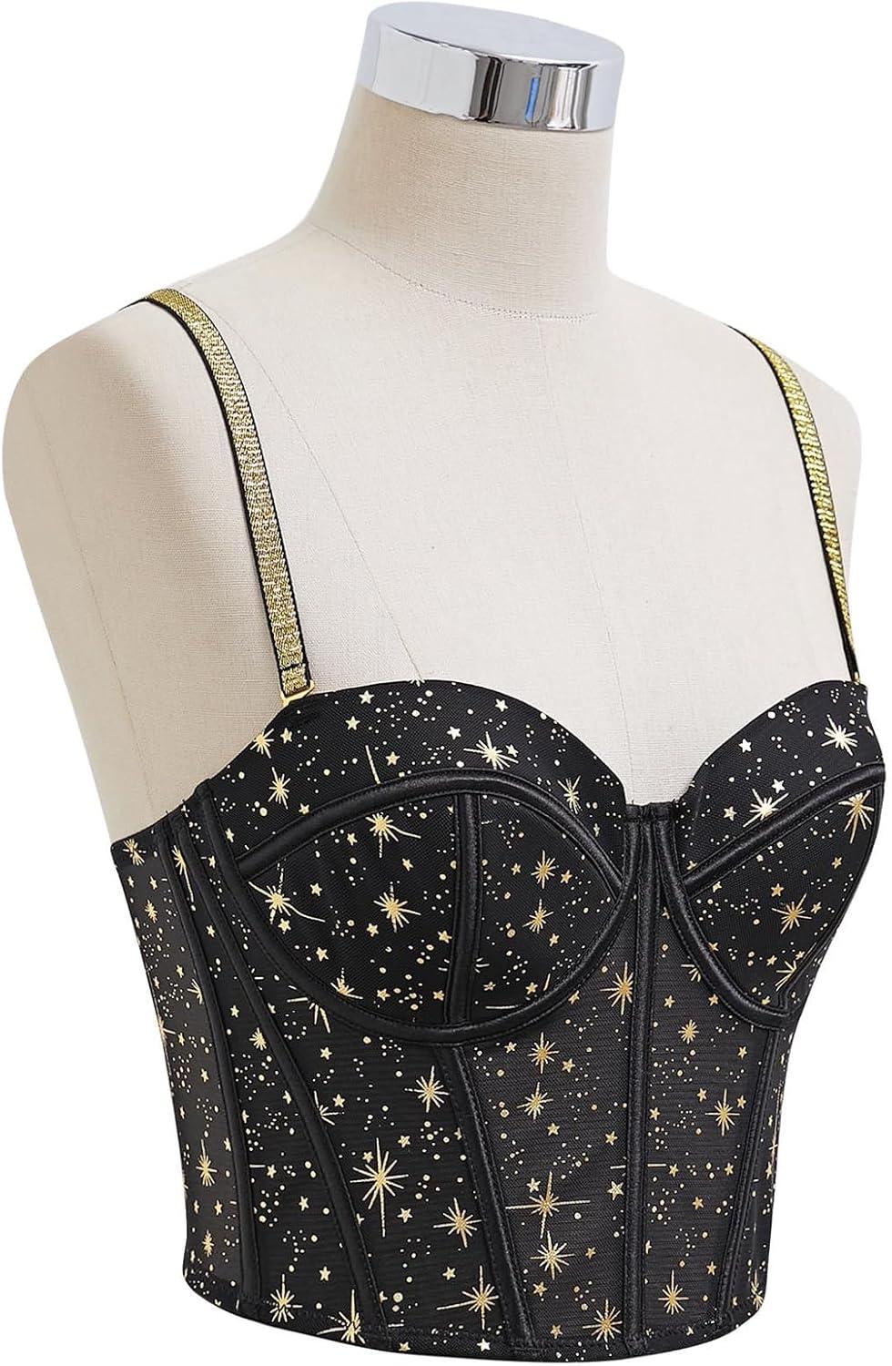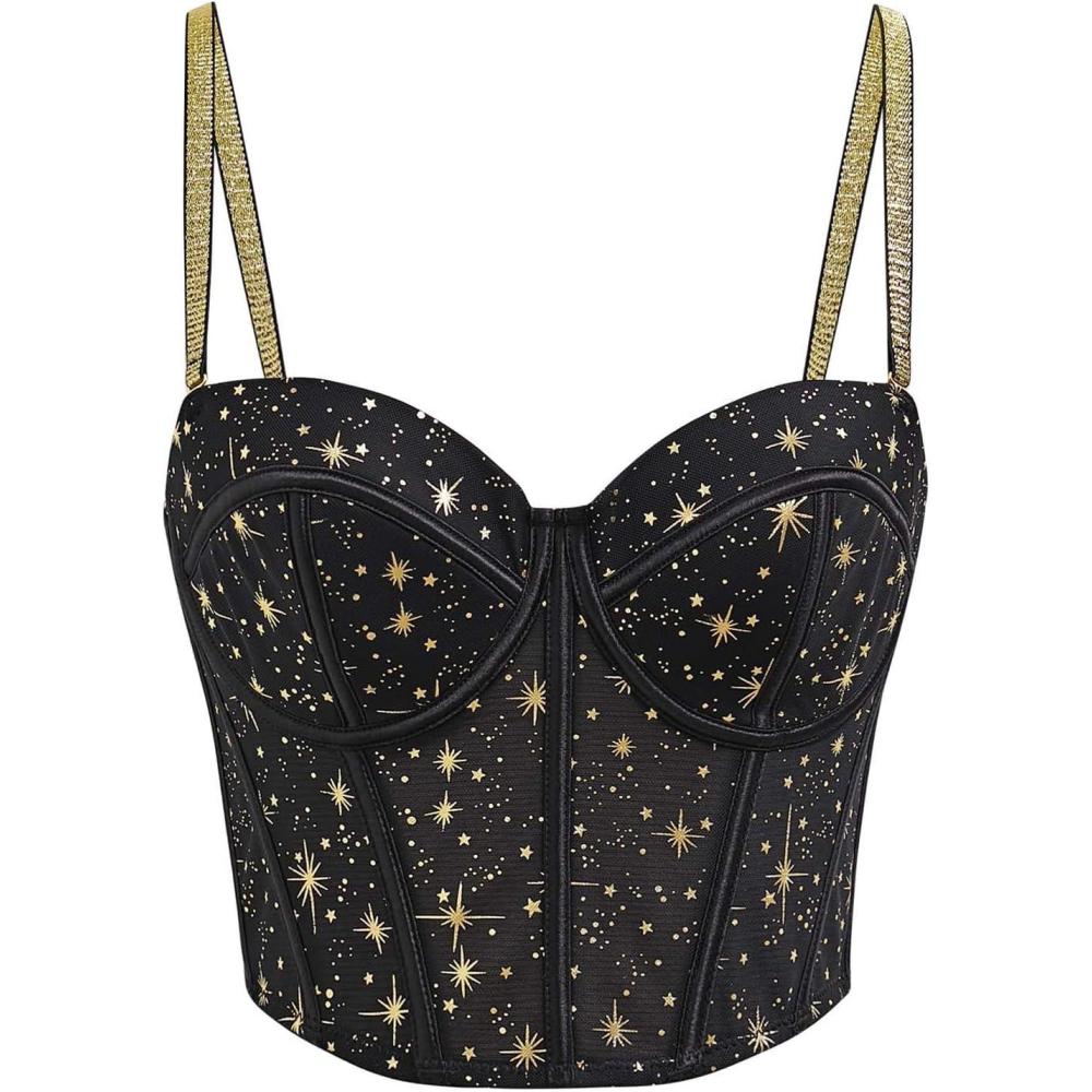 Be the first to review “CHICWISH Women Golden Stars Print Bustier Top Push Up Croset Top Underwire Bra Going Out Holiday Party Crop Tops(Black)” Cancel reply