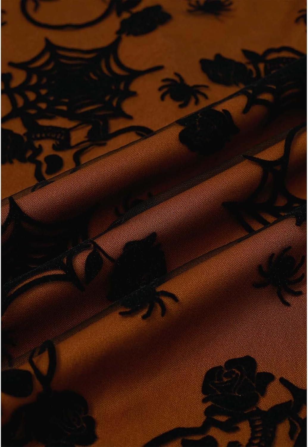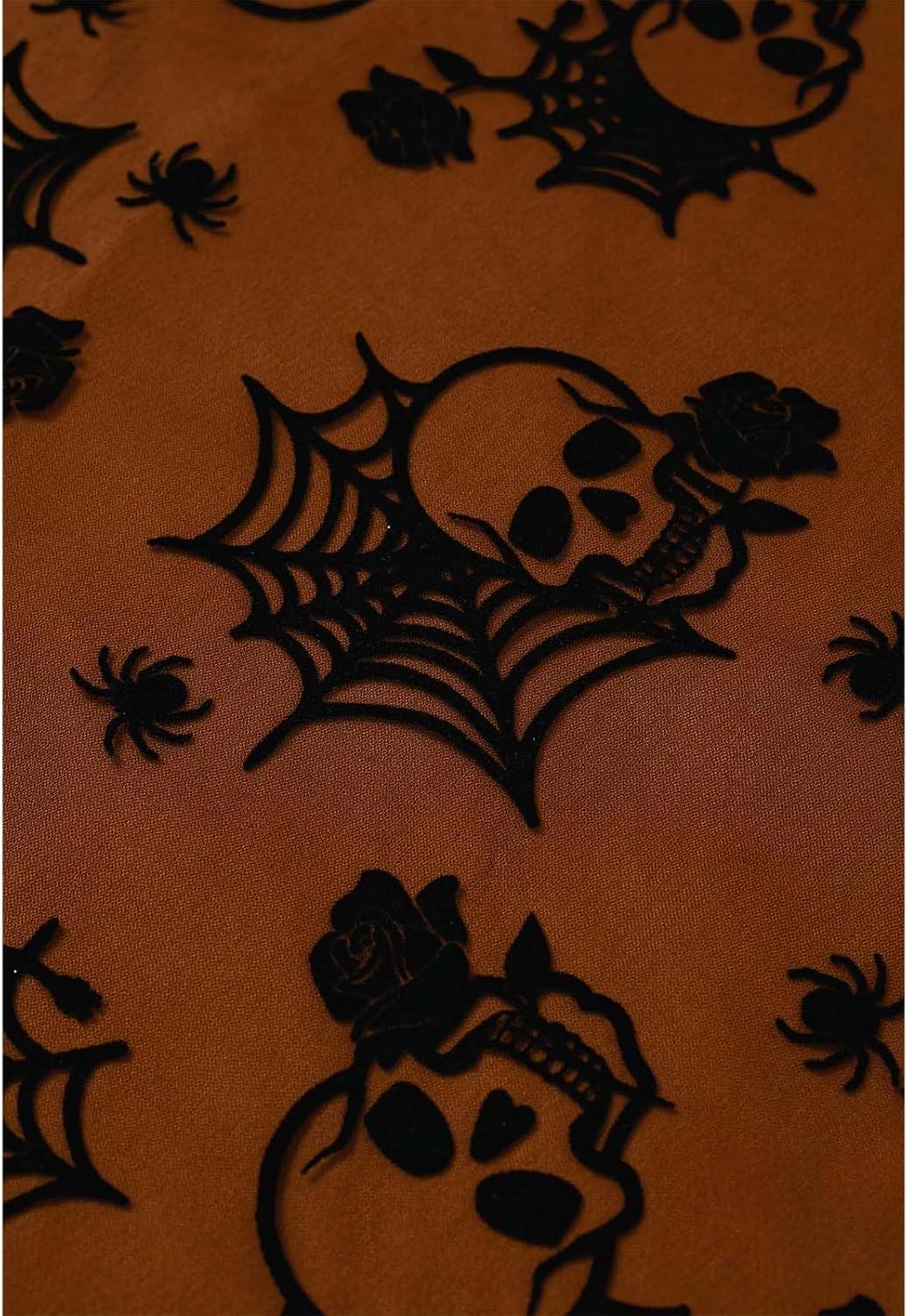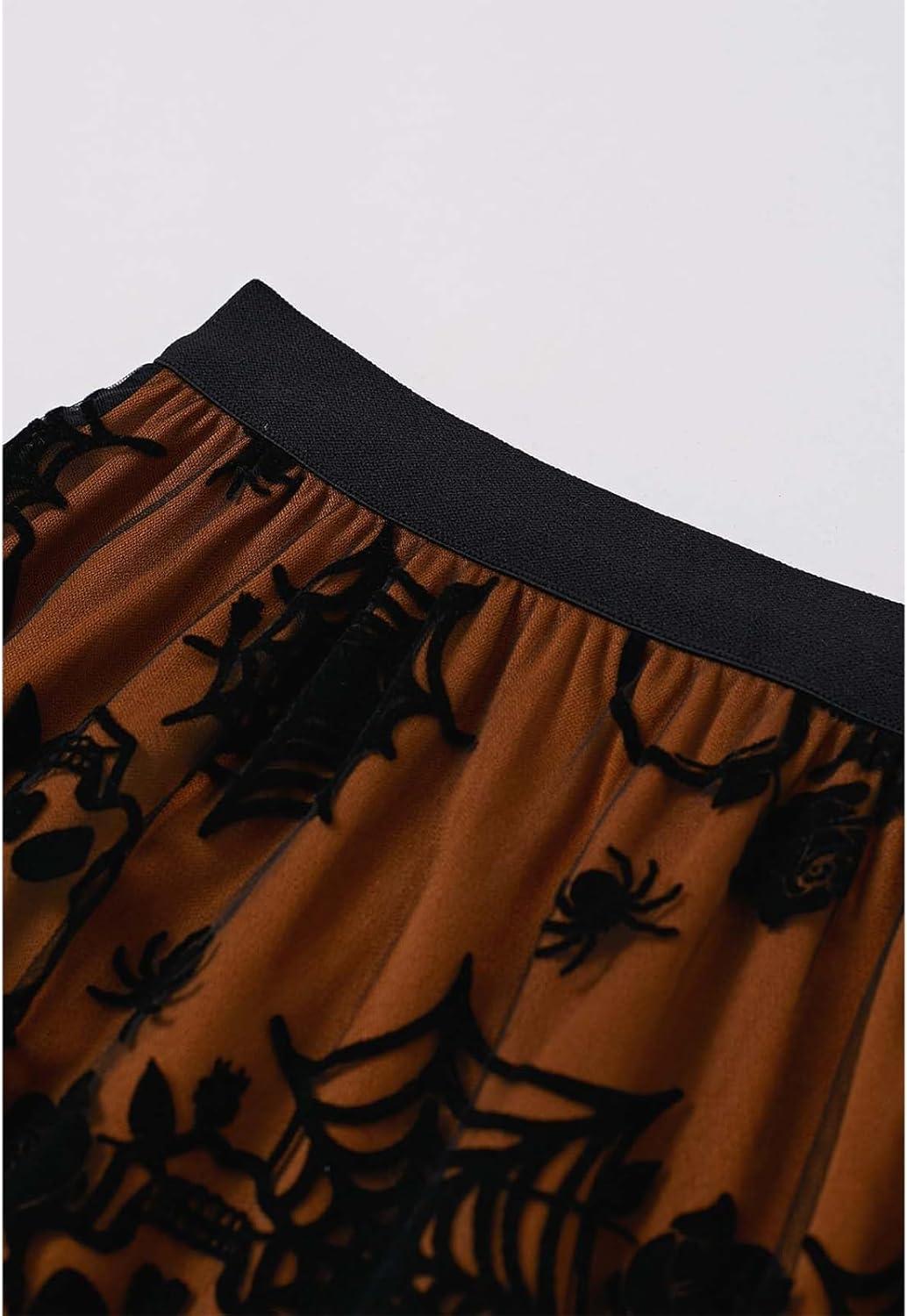 CHICWISH Women Halloween Skull Mesh Tulle Skirt Elastic Waist A-Line Halloween Party Spider Web Layered Midi Skirt(Pumpkin)