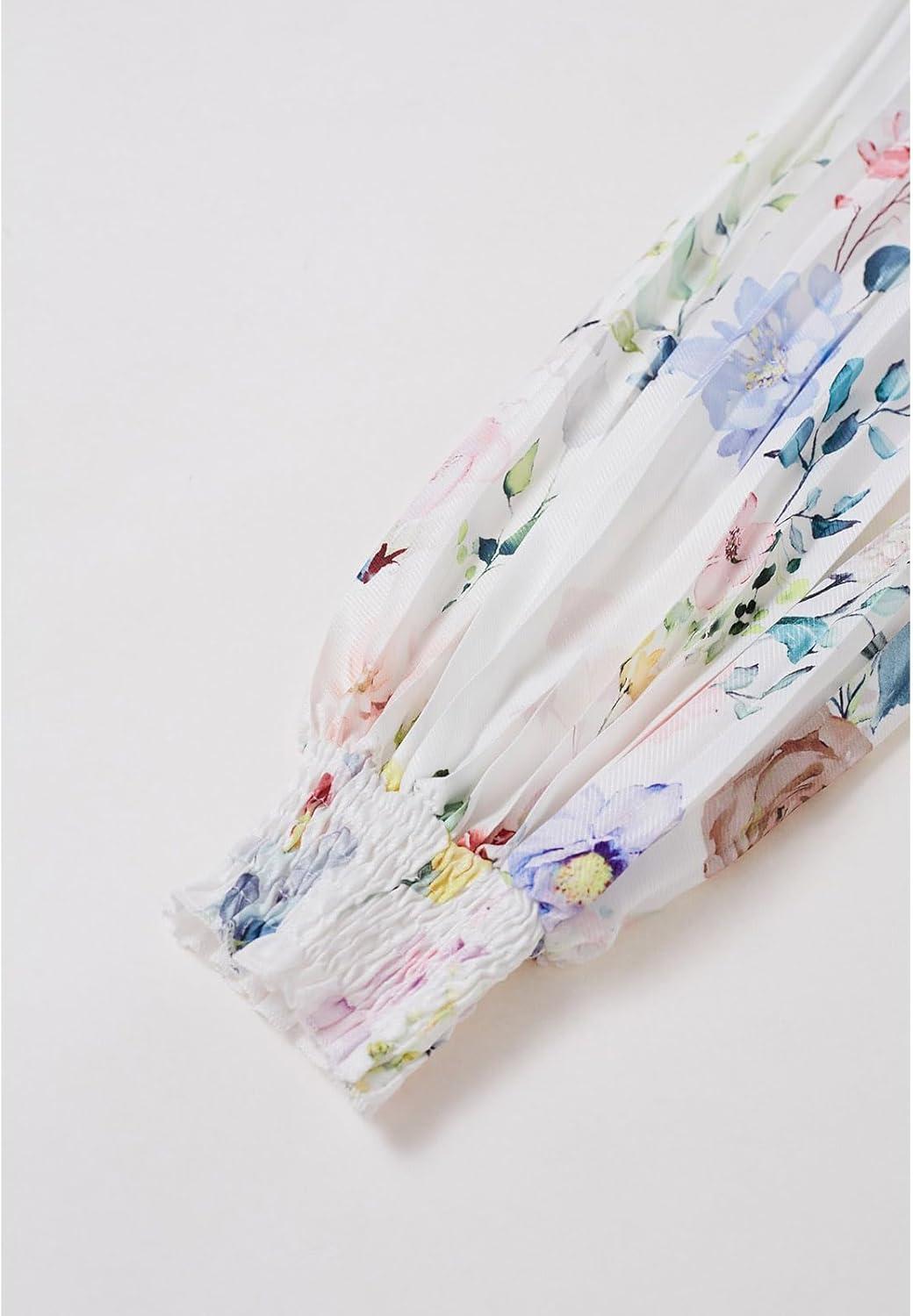 Be the first to review “CHICWISH Women Long Sleeve Maxi Dress Watercolor Floral Print Crewneck Casual Pleated Summer Long Dresses with Belt(White)”