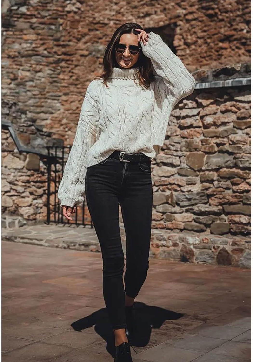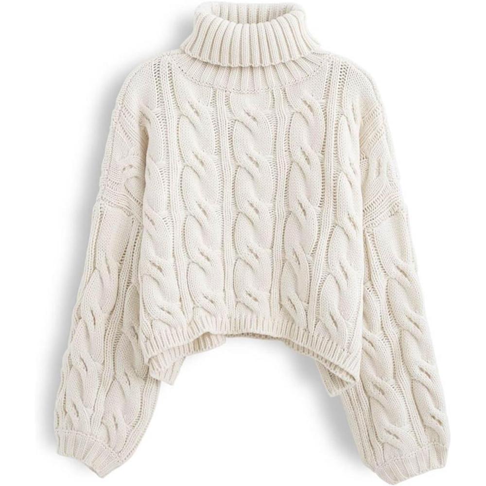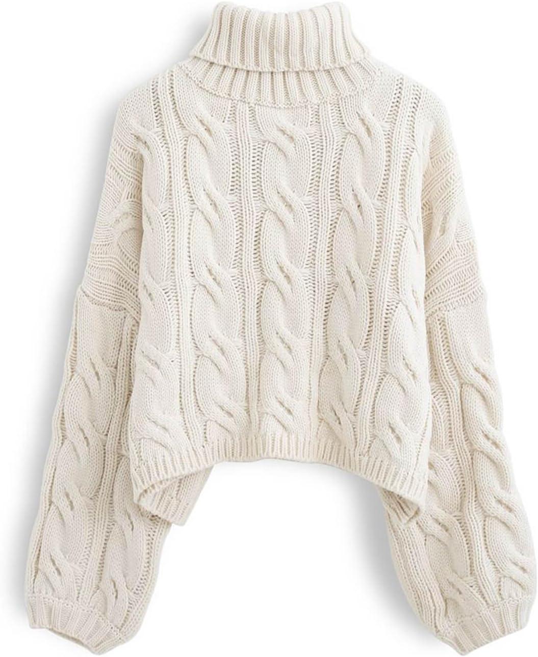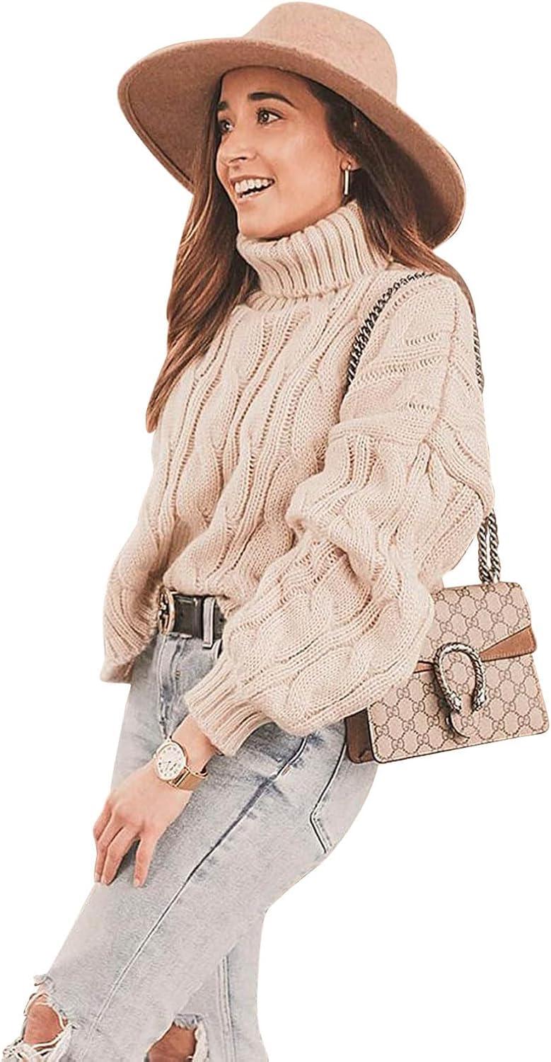 CHICWISH Women Turtleneck Christmas Sweater Cable Crop Long Sleeve Pullover Sweaters Fall Winter Casual Chunky Knit Tops(Sand)