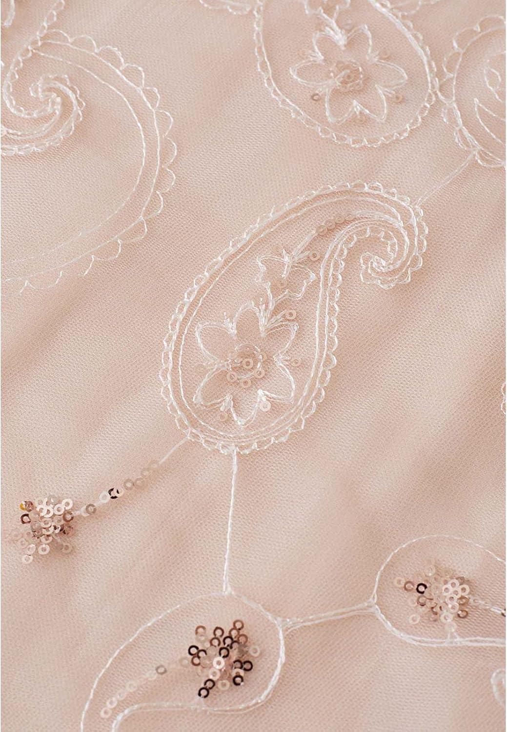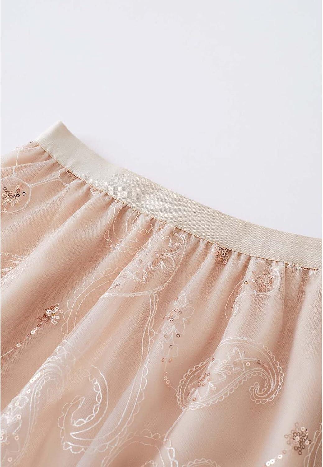 CHICWISH Women’s Black/Apricot Sequined Embroidered Paisley Mesh Midi Skirt(Apricot)
