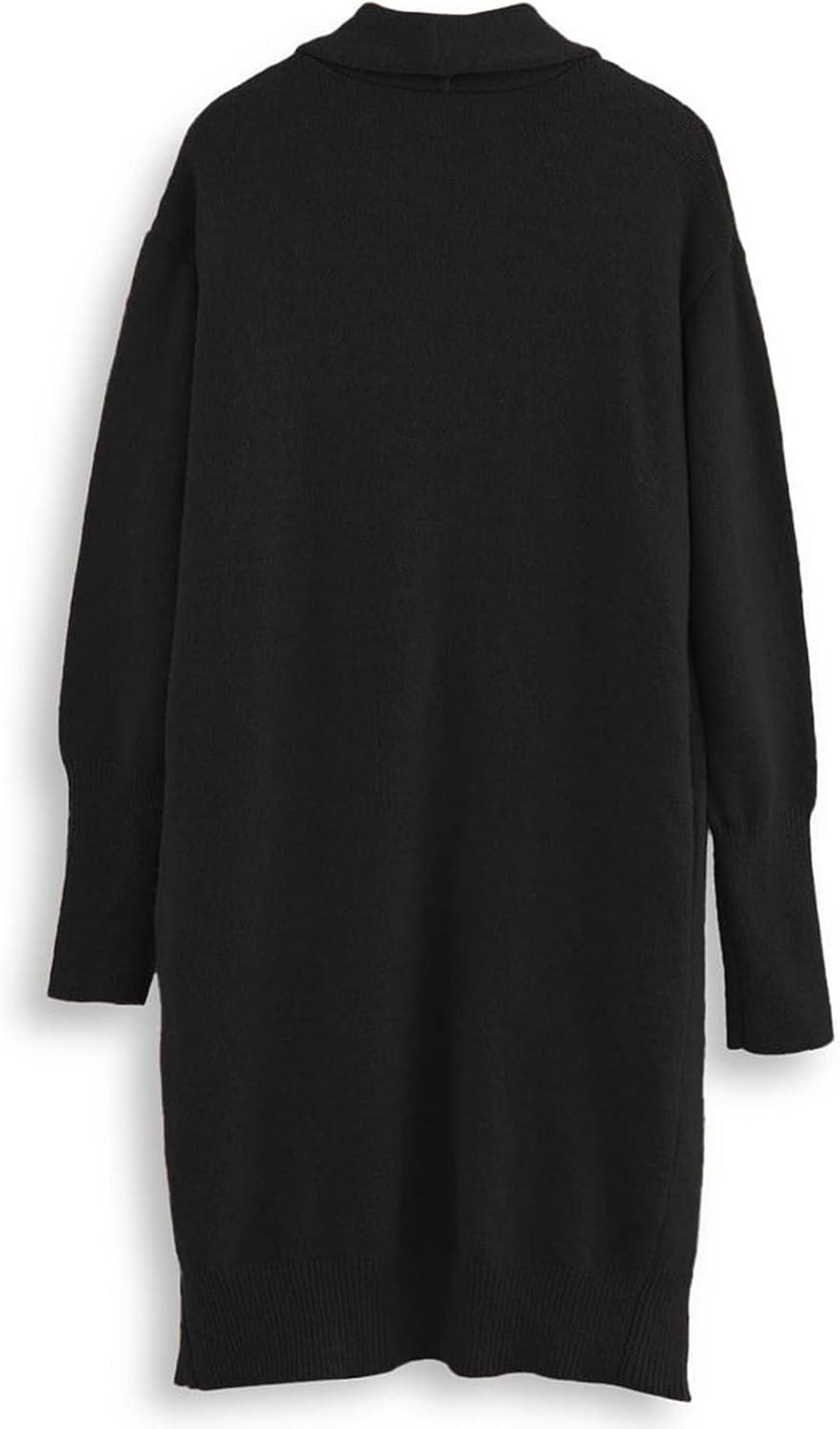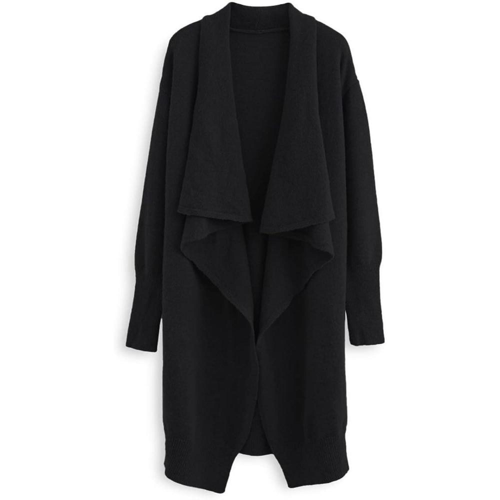 CHICWISH Women's Open Front Waterfall Longline Knit Cardigan Coatigan Light Jacket(Black-waterfall)