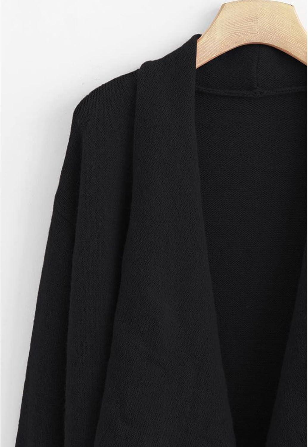 CHICWISH Women’s Open Front Waterfall Longline Knit Cardigan Coatigan Light Jacket(Black-waterfall)