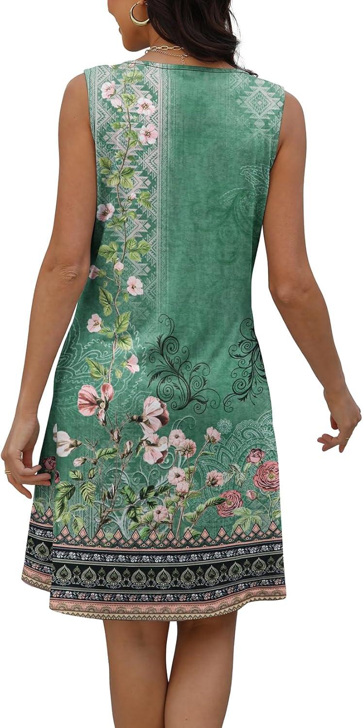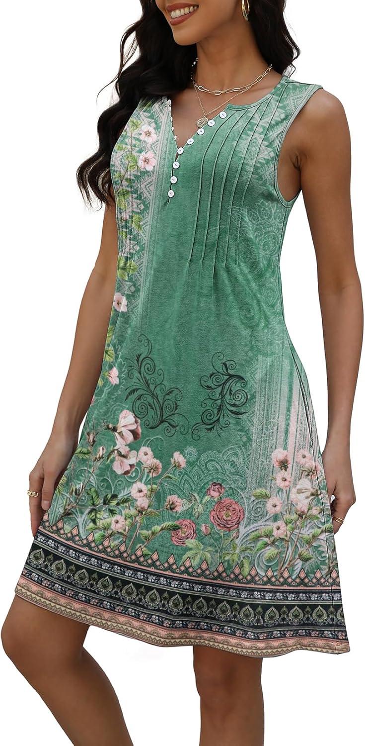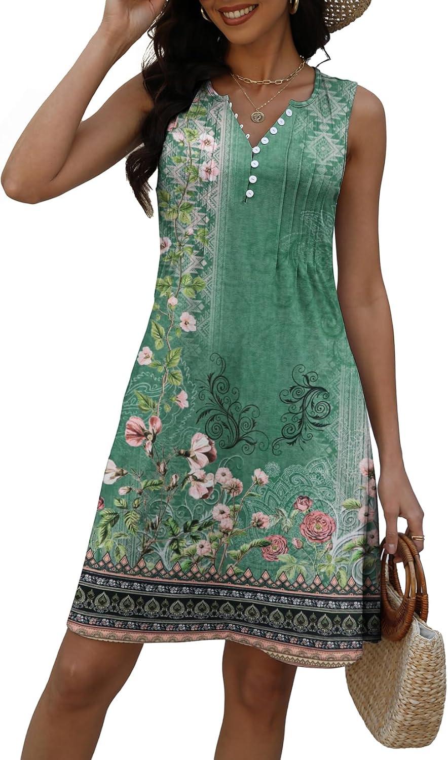 Disamer Beach Dresses for Women 2024 Vacation Swim Cover up V-Neck Summer Dress Button Down Sleeveless Boho Floral Sundress(Flower Wallpaper Green)