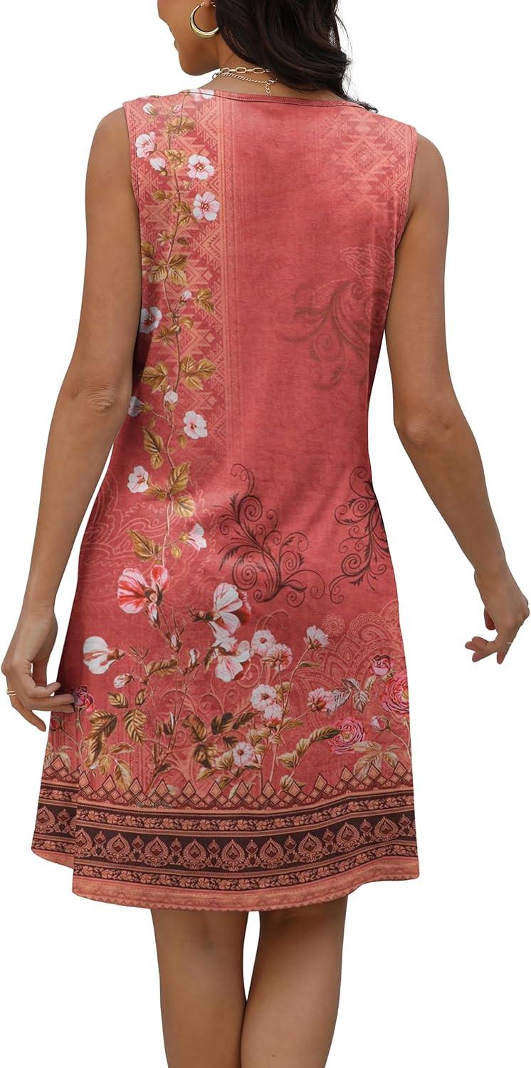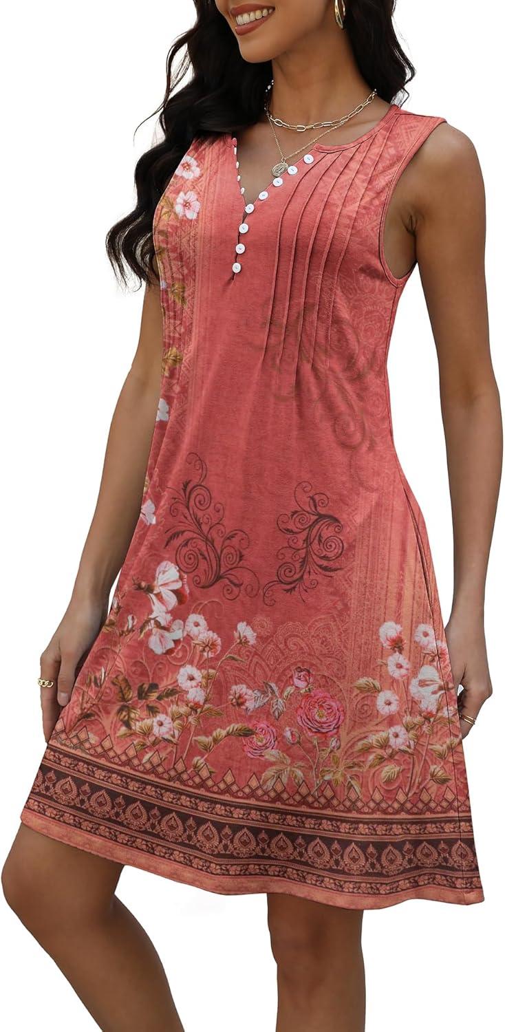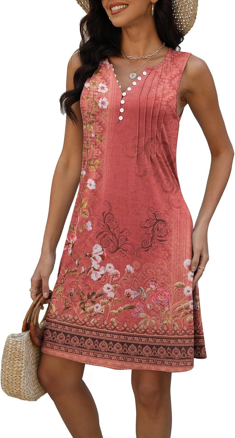 Disamer Beach Dresses for Women 2024 Vacation Swim Cover up V-Neck Summer Dress Button Down Sleeveless Boho Floral Sundress(Flower Wallpaper Red)