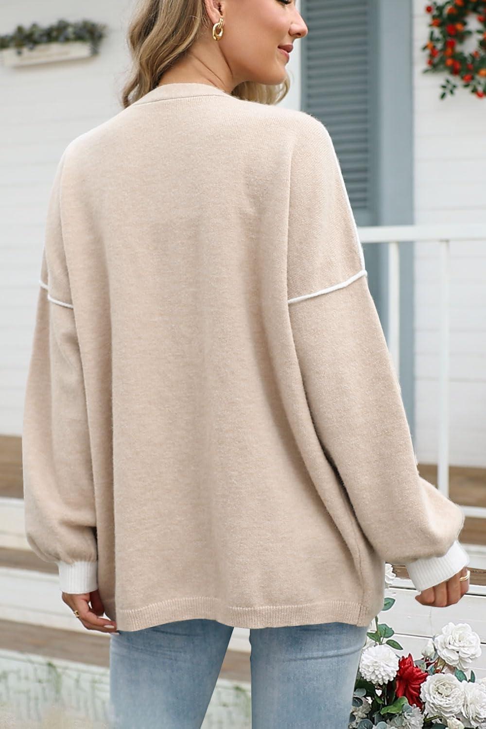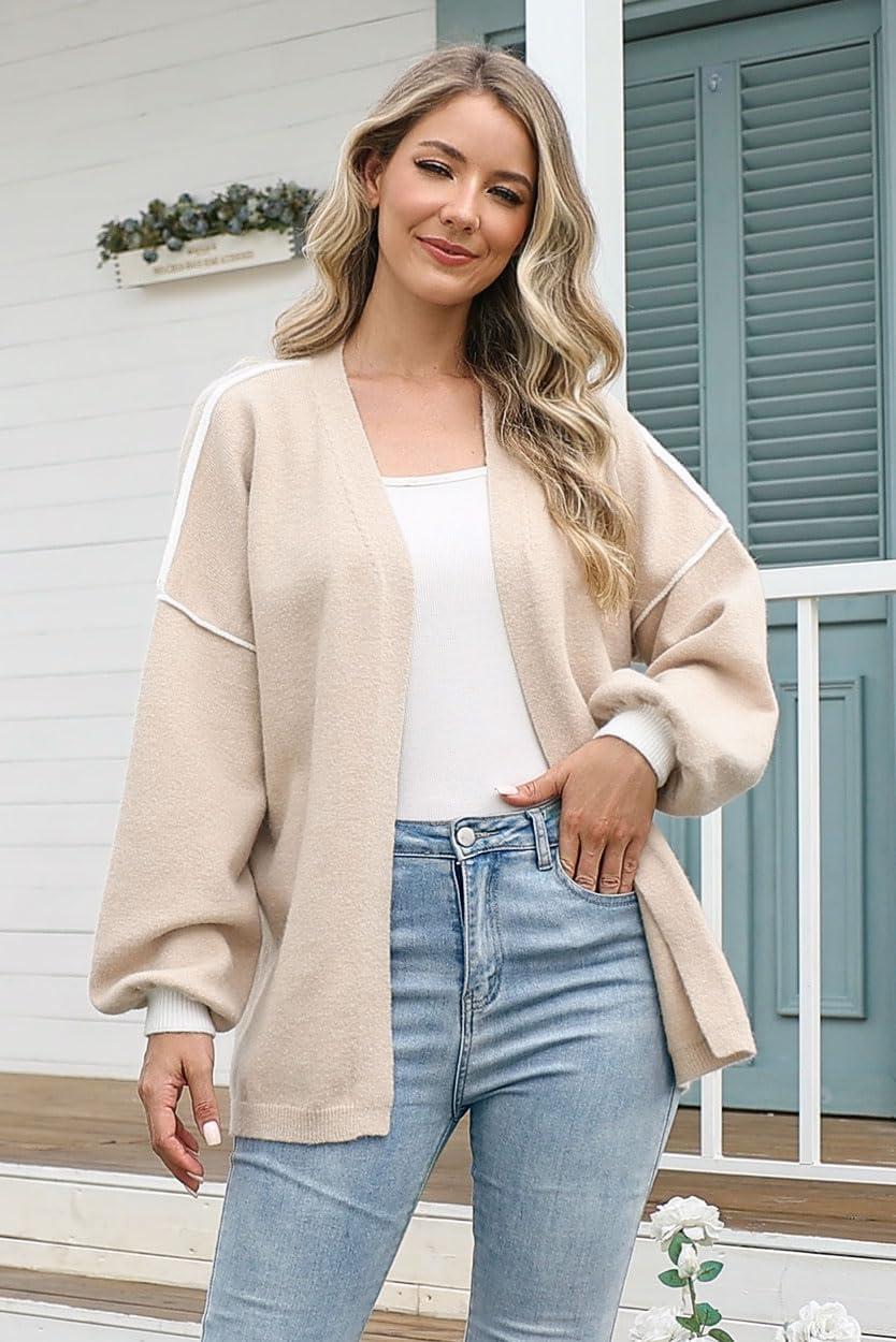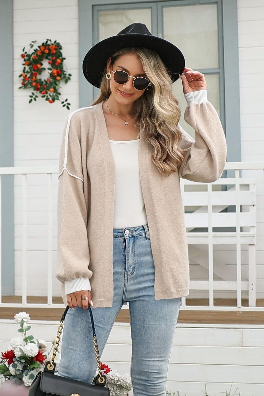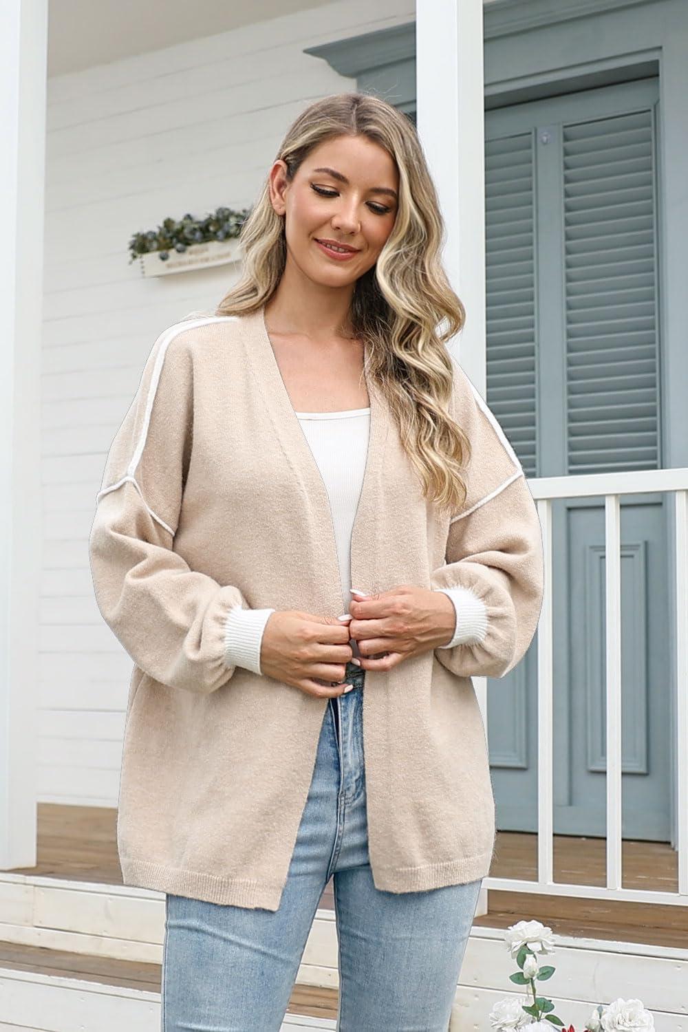 Disamer Oversized Cardigan Sweaters for Women Fall 2025 Winter Clothing Long Sleeve Knit Open Front Chunky Cardigans Sweater(Line Apricot)