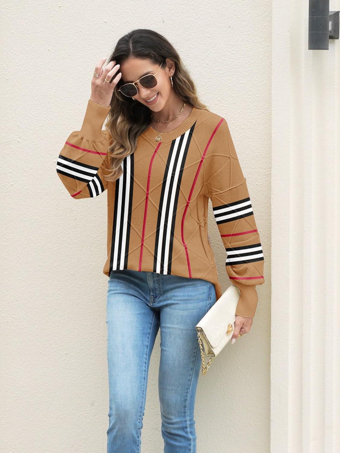 Be the first to review “Disamer Sweaters for Women Fall Outfits Winter 2025 Lightweight Long Batwing Sleeve Crewneck Knit Pullover Sweaters Tops(Striped Brown)”