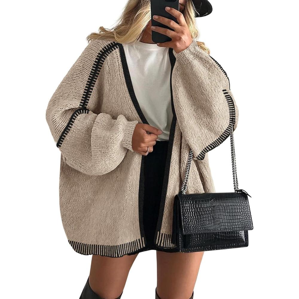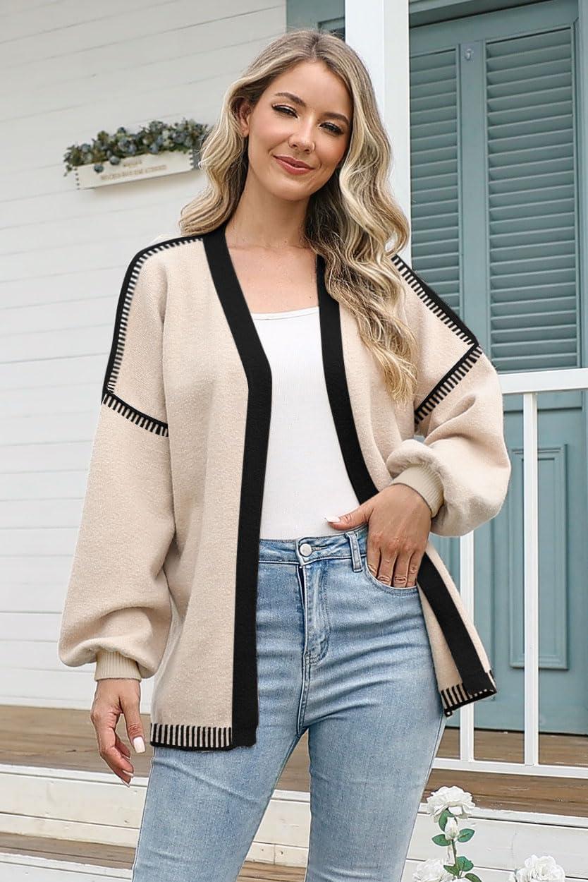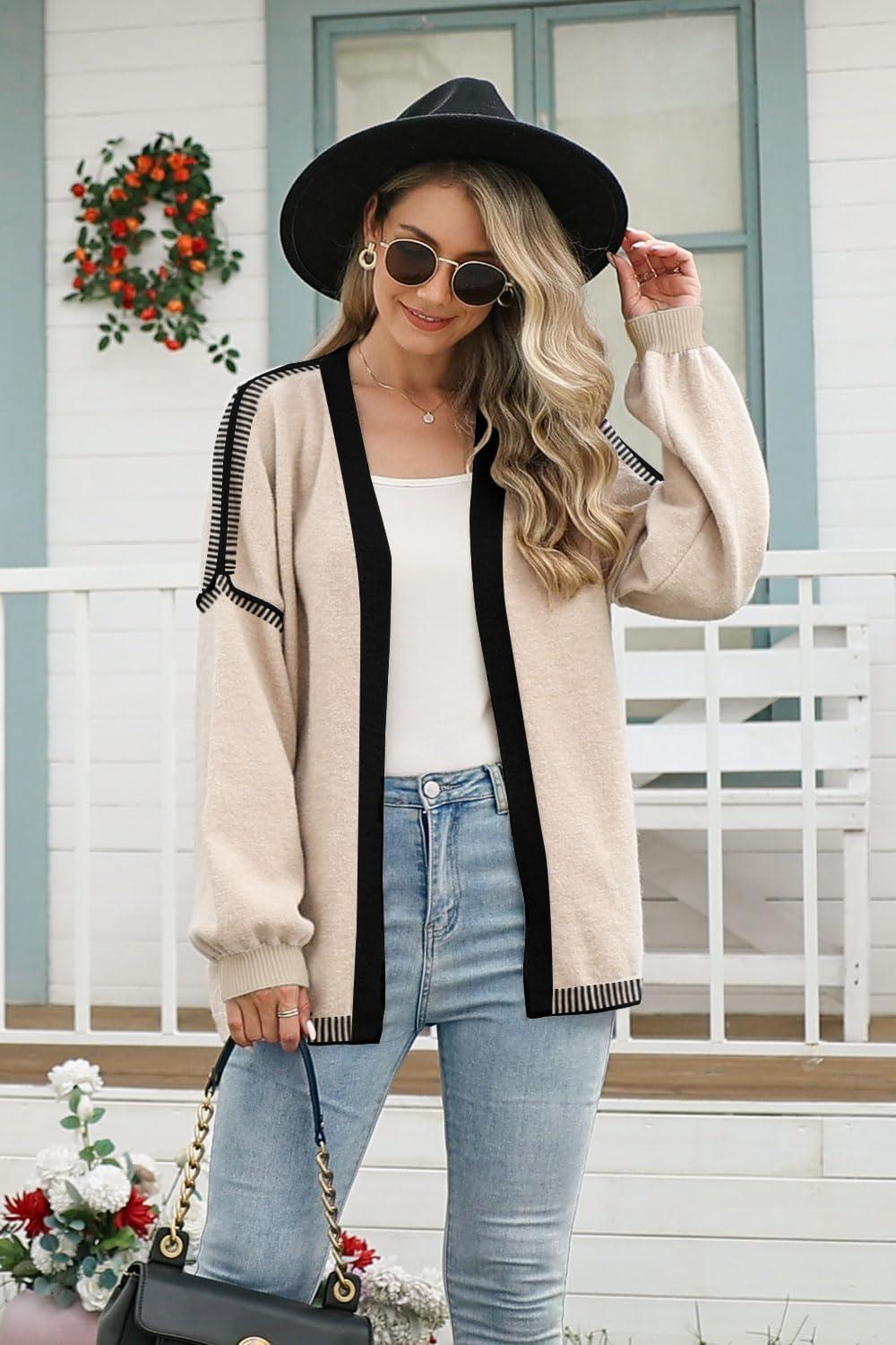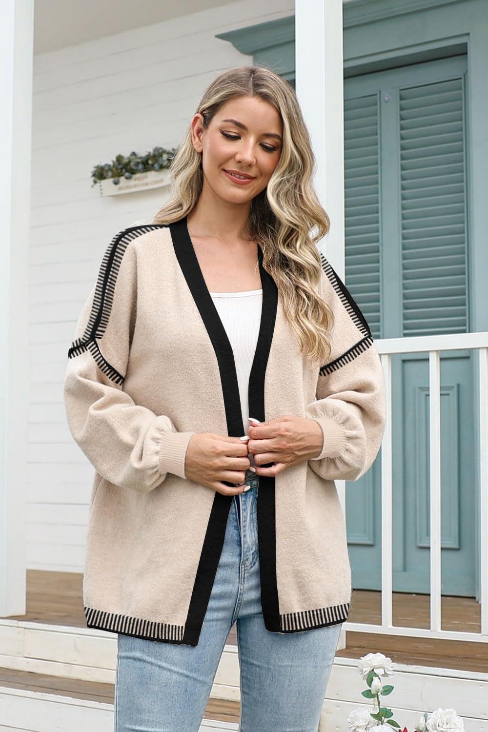Disamer Womens Oversized Cardigan Sweaters 2025 Trendy Fall Clothes Batwing Sleeve Knitted Tops Open Front Sweater Jackets(Line Apricot)