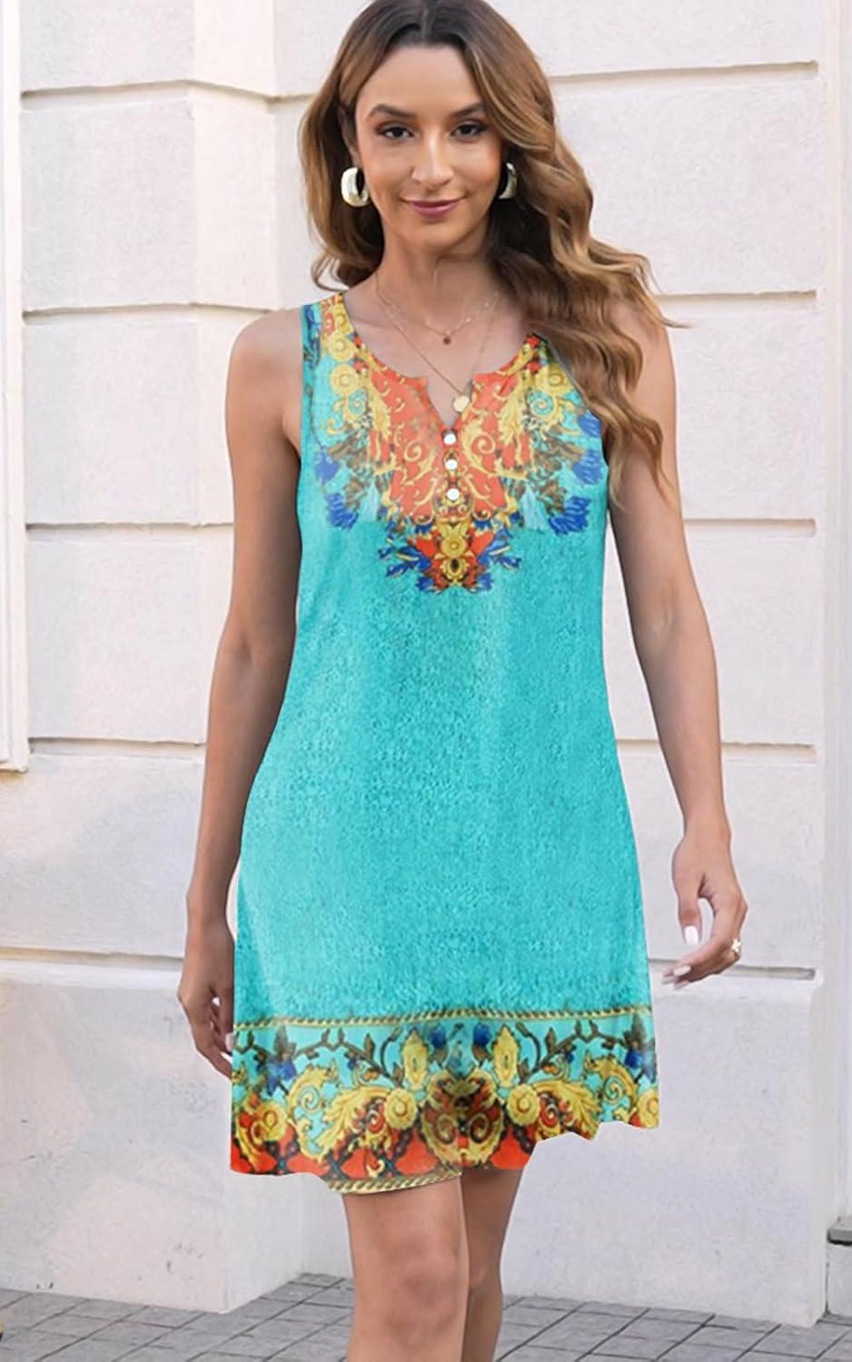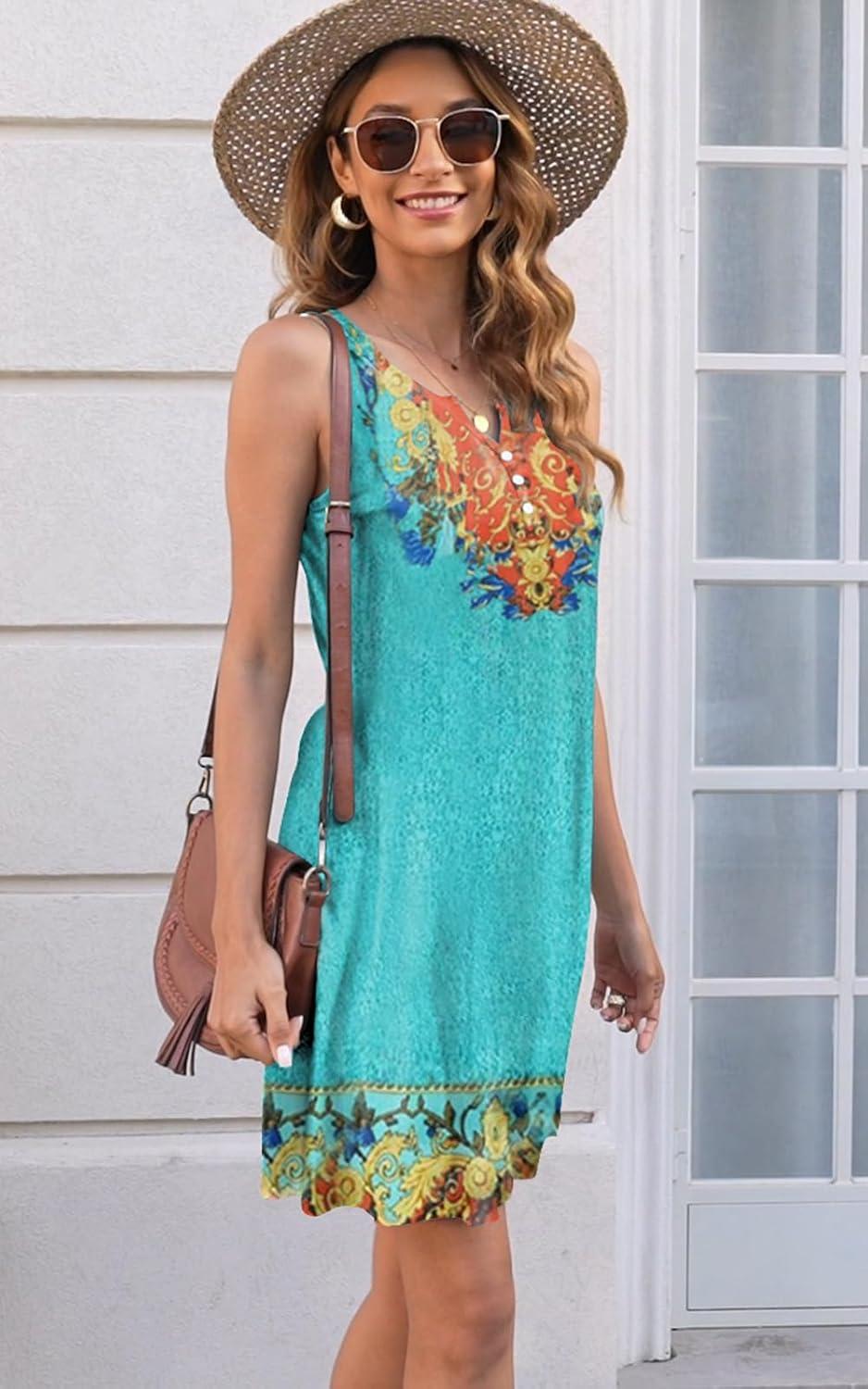 Disamer Womens Summer Dress 2025 Casual Button Down V Neck Sleeveless Boho Floral Beach Sundresses Vacation A-Line Dresses,Flower Vine Green,Small
