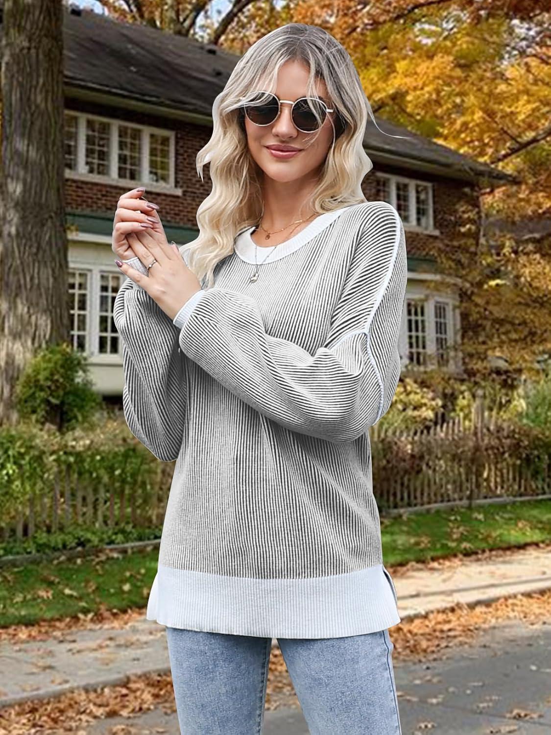 Disamer Womens Sweaters 2025 Fall Clothes Long Sleeve Colorblock Striped Oversized Sweater Knit Pullover Tops Winter Outfits(Pure Blue)