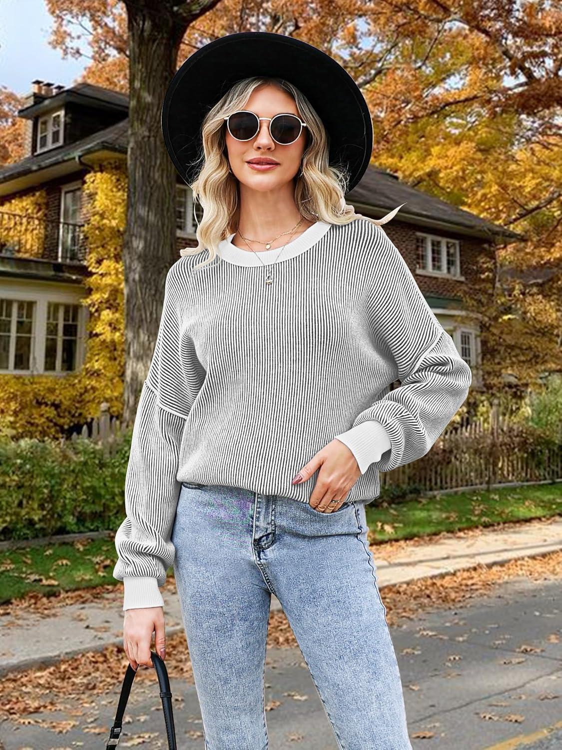 Disamer Womens Sweaters 2025 Fall Clothes Long Sleeve Colorblock Striped Oversized Sweater Knit Pullover Tops Winter Outfits(Pure Black)