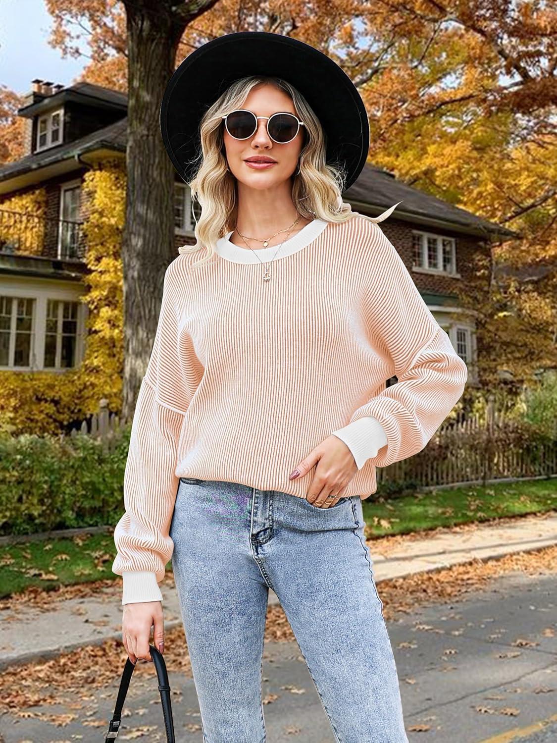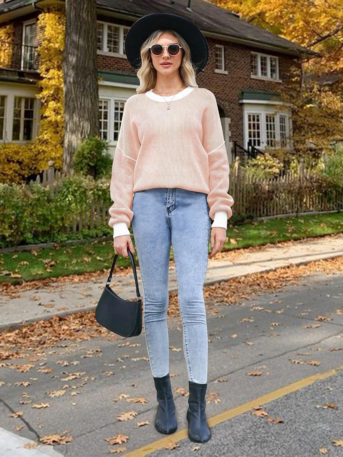 Get the Disamer Womens Sweaters 2025 Fall Clothes Long Sleeve Colorblock Striped Oversized Sweater Knit Pullover Tops Winter Outfits(Pure Brown) you want at a price you can afford with our markdown sale.