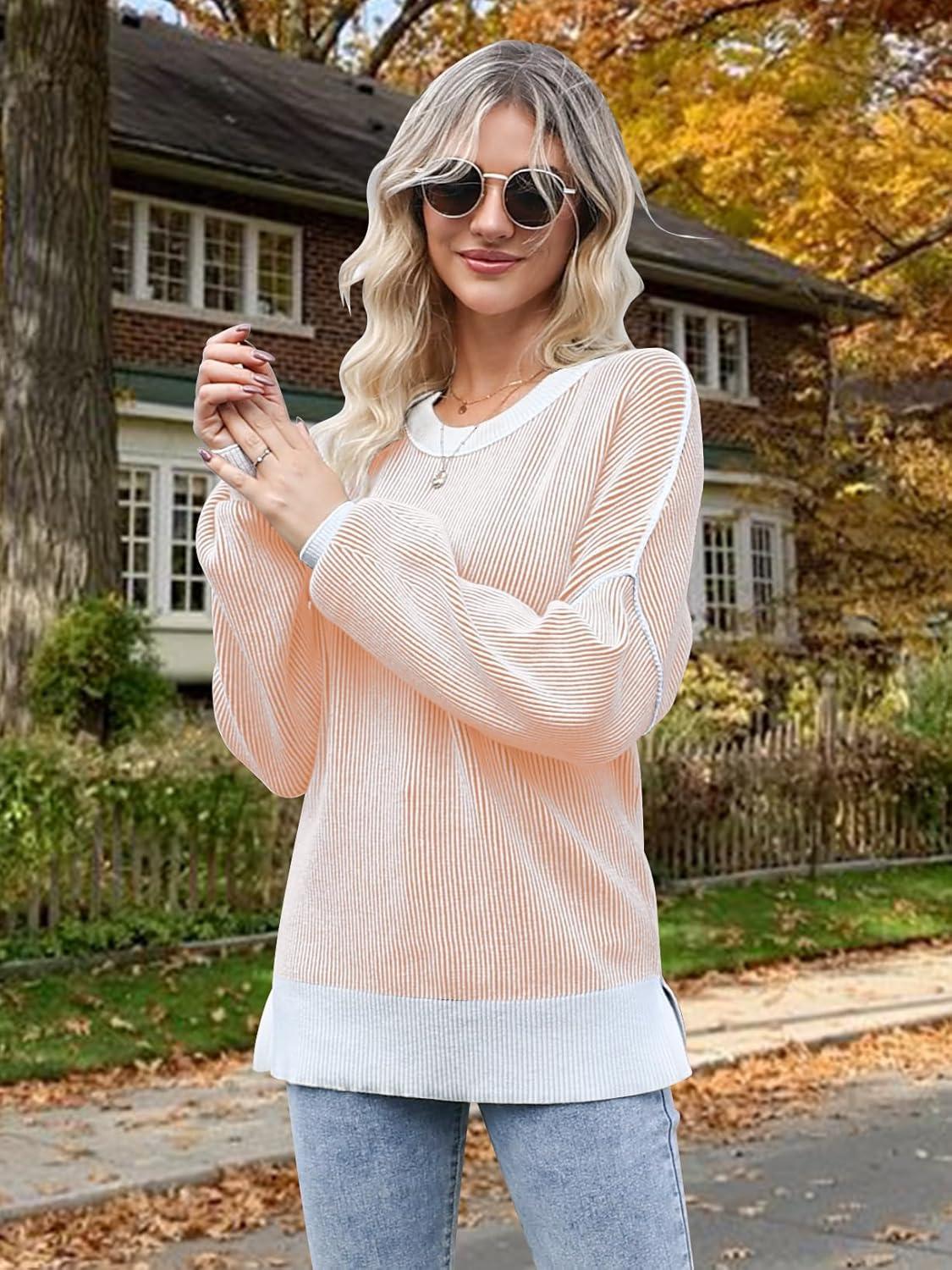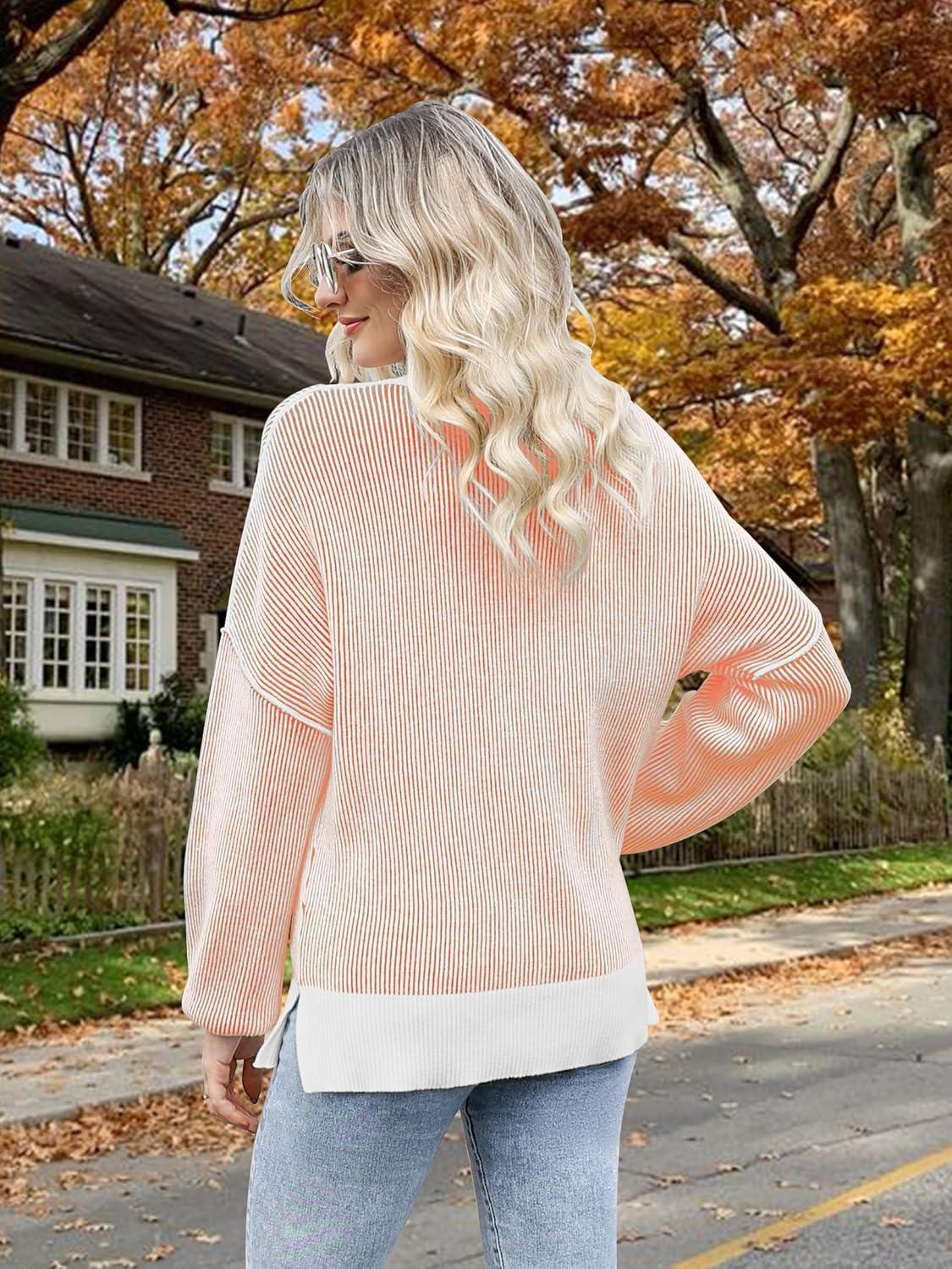 Disamer Womens Sweaters 2025 Fall Clothes Long Sleeve Colorblock Striped Oversized Sweater Knit Pullover Tops Winter Outfits(Pure Brown)