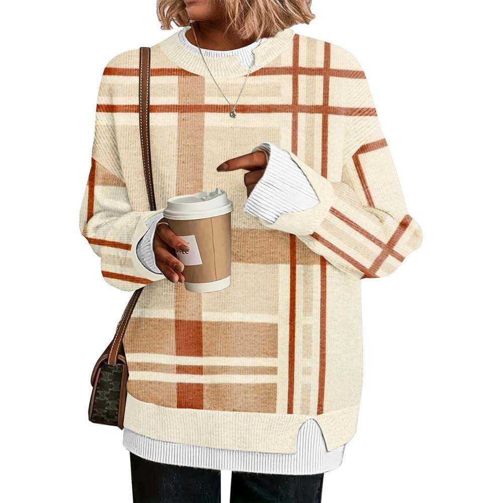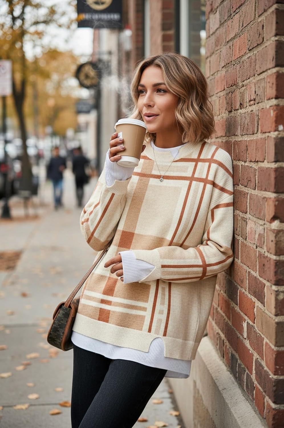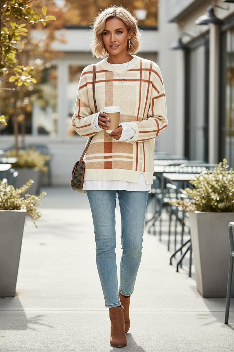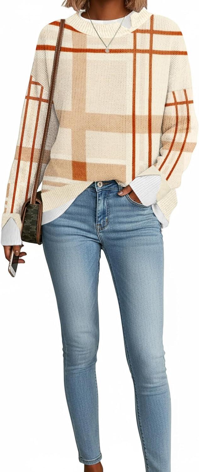 Disamer Womens Sweaters Fall Clothes Fashion 2025 Cowboy Chic Knit Cozy Sweater School Teacher Outfits Long Sleeve Pullover(Striped Plaid)