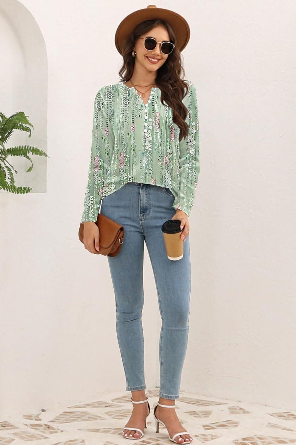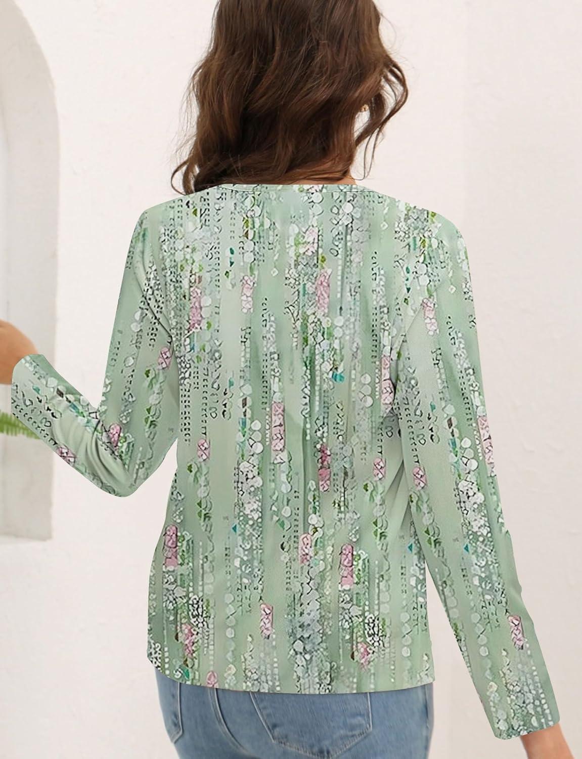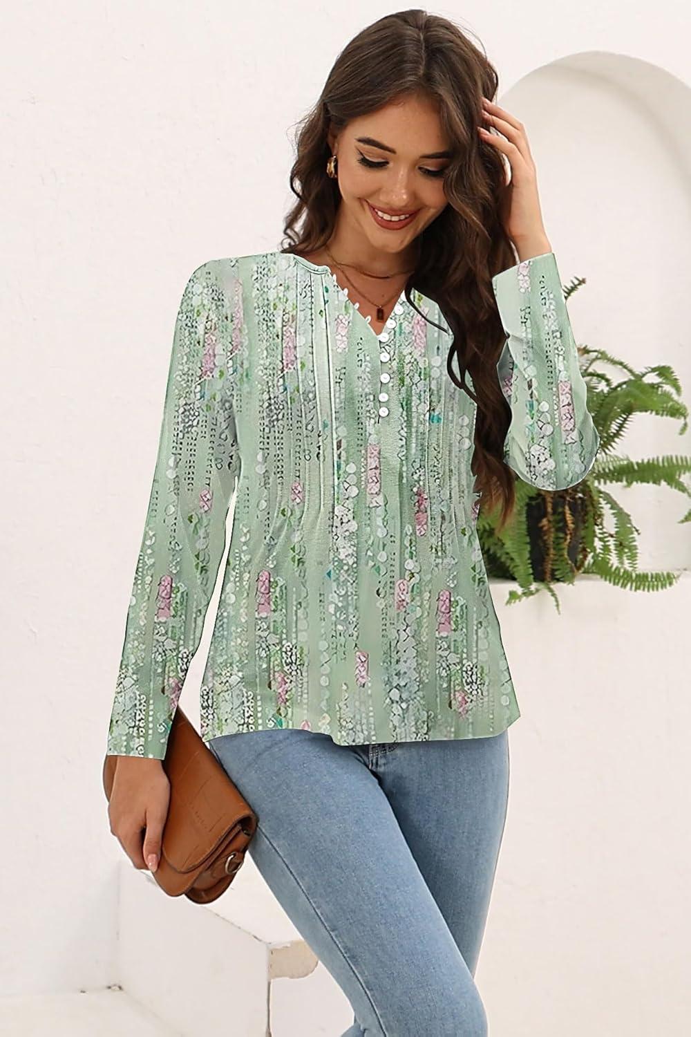 Disamer Womens T Shirts 2025 Fashion Tops Long Sleeve Pleated Dressy Casual Button Down Blouses Fall Clothes(Dewdrop Green)