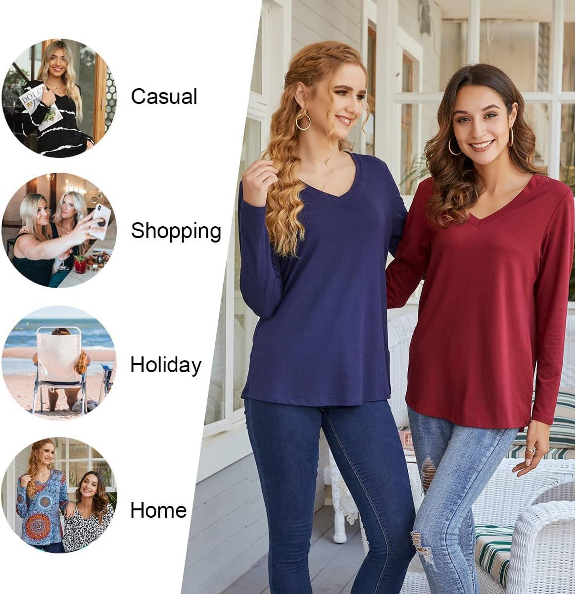 LONGYUAN Women Long Sleeve Tops Vneck Shirts Basic Loose Tunic Tops Casual 2025 Trendy Blouses(Burgundy)