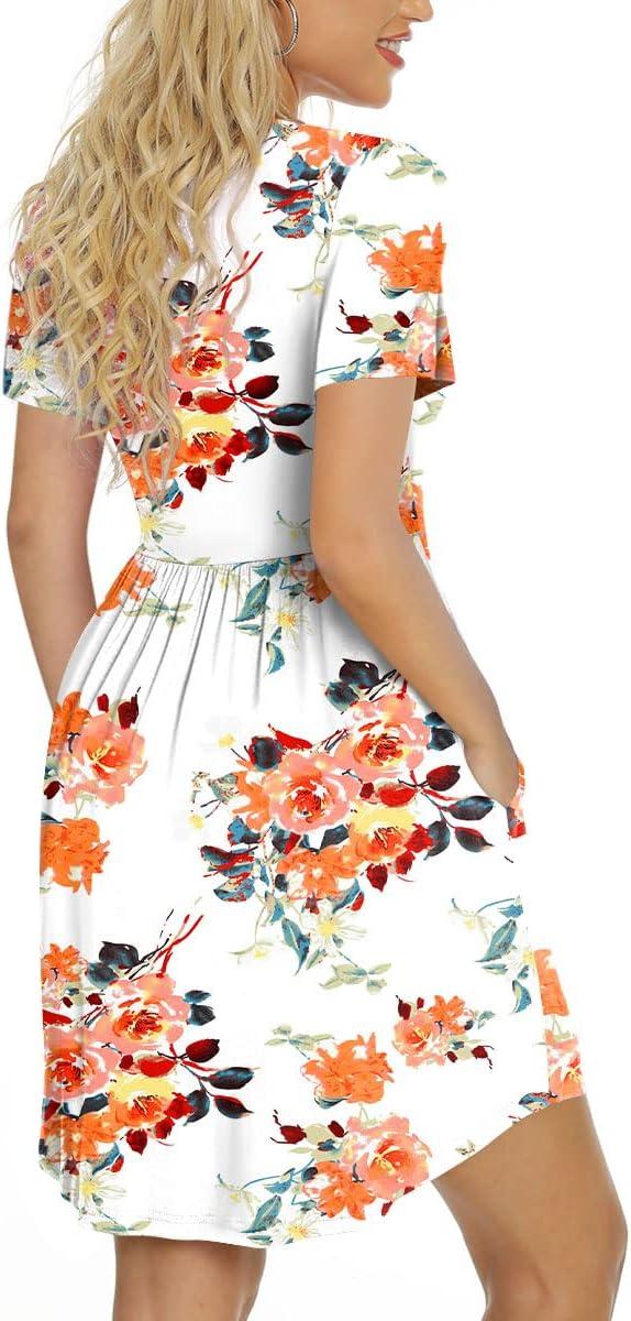 LONGYUAN Women's Casual Dresses 2025 Summer Short Sleeve Dress Hide Belly Loose Fit Sundress with Pockets S-3XL(Camellia White)