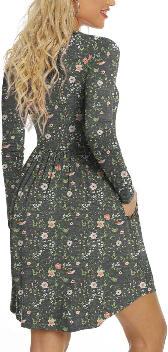 LONGYUAN Womens Dress Long Sleeve Knee Length Dresses Casual Fall Dress with Pockets Trendy 2025(Black Sparrow)