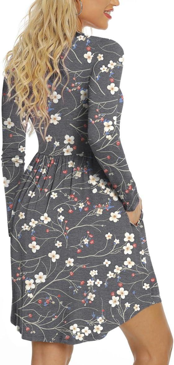LONGYUAN Womens Dress Long Sleeve Knee Length Dresses Casual Fall Dress with Pockets Trendy 2025(Black-khaki Floral)