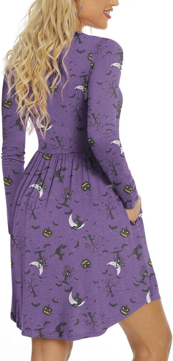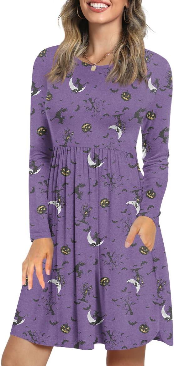 LONGYUAN Womens Dress Long Sleeve Knee Length Dresses Casual Fall Dress with Pockets Trendy 2025(Dark Night Bat Purple)
