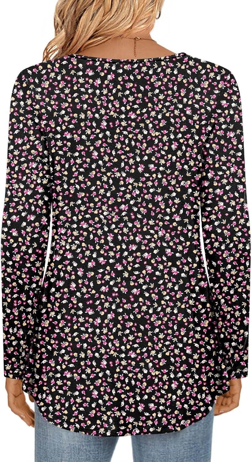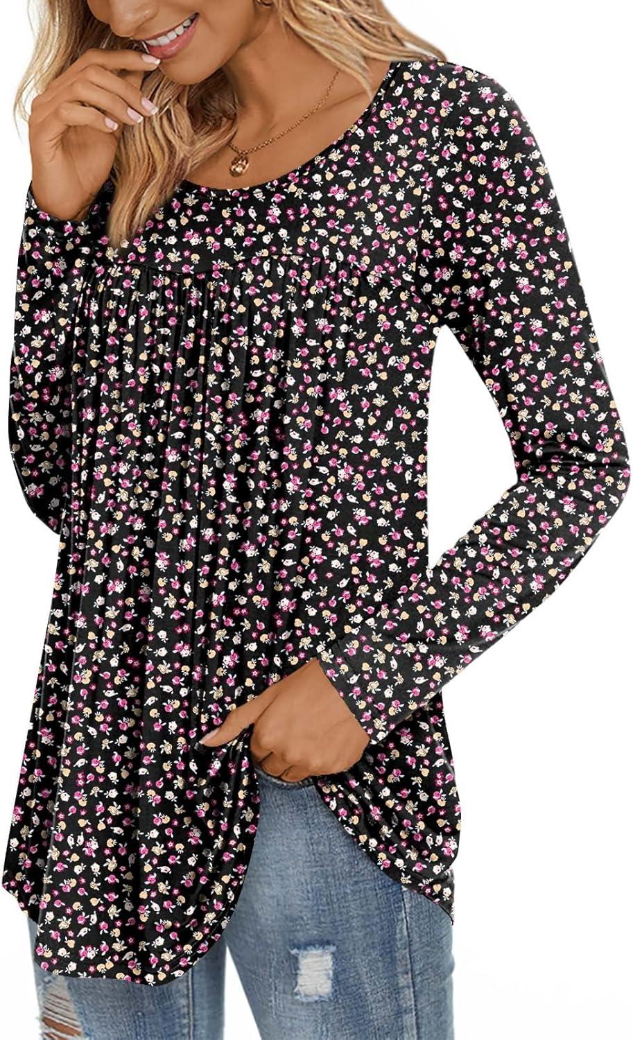 LONGYUAN Women’s Long Sleeve Casual Tunics Tops 2025 Winter Loose Shirts Flare Blouse Comfy Elastic Cute(1-black Litte Fl)