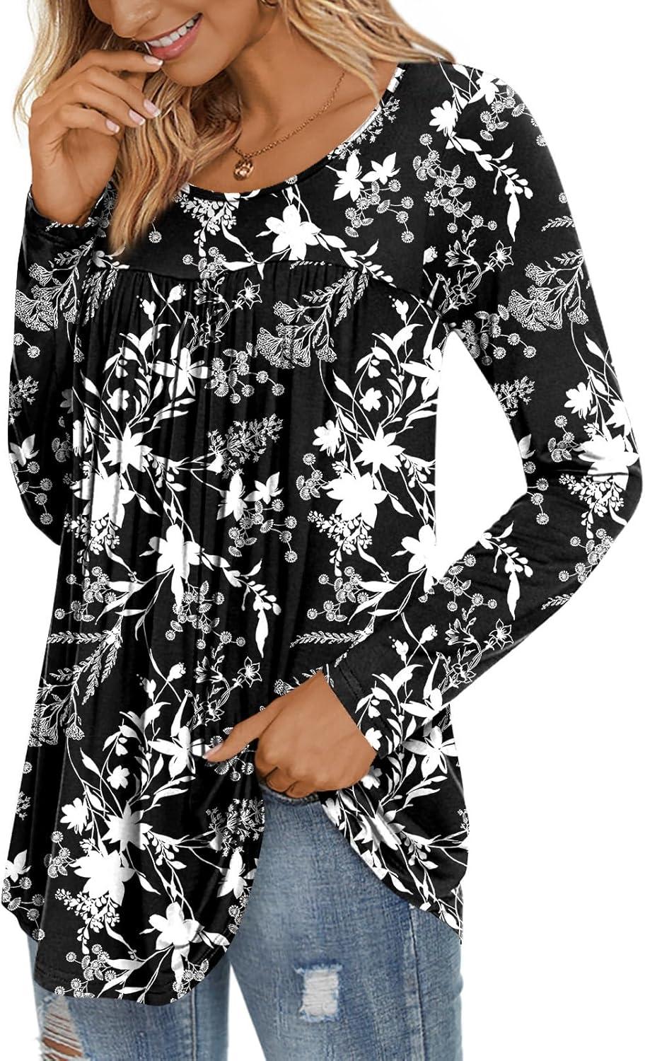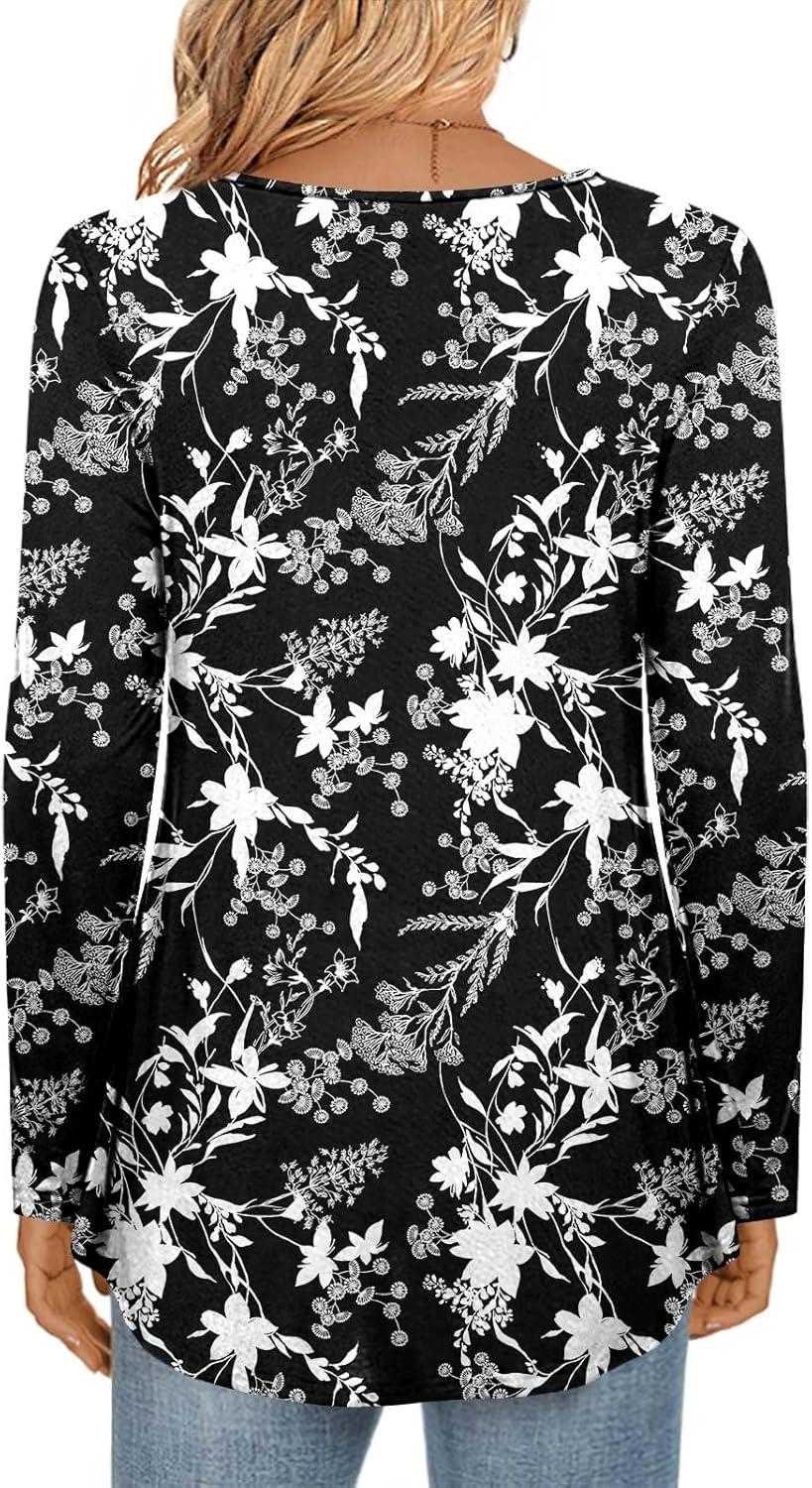 LONGYUAN Women’s Long Sleeve Casual Tunics Tops 2025 Winter Loose Shirts Flare Blouse Comfy Elastic Cute(1-black Litte Fl)