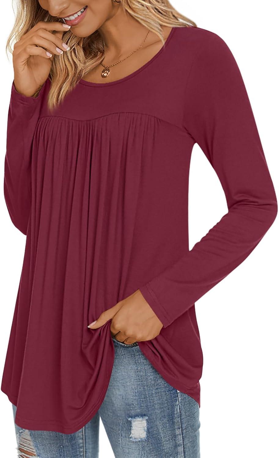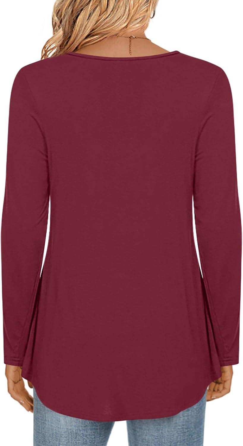 LONGYUAN Women’s Long Sleeve Casual Tunics Tops 2025 Winter Loose Shirts Flare Blouse Comfy Elastic Cute(Burgundy)
