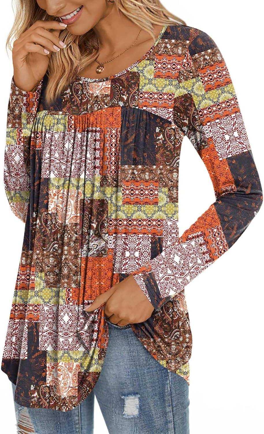 LONGYUAN Women’s Long Sleeve Casual Tunics Tops 2025 Winter Loose Shirts Flare Blouse Comfy Elastic Cute(Color Block Mixing)
