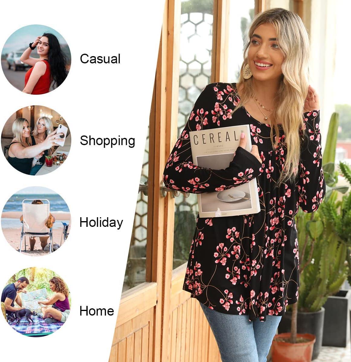 LONGYUAN Women’s Long Sleeve Casual Tunics Tops 2025 Winter Loose Shirts Flare Blouse Comfy Elastic Cute(Fl Gypsophila Black)
