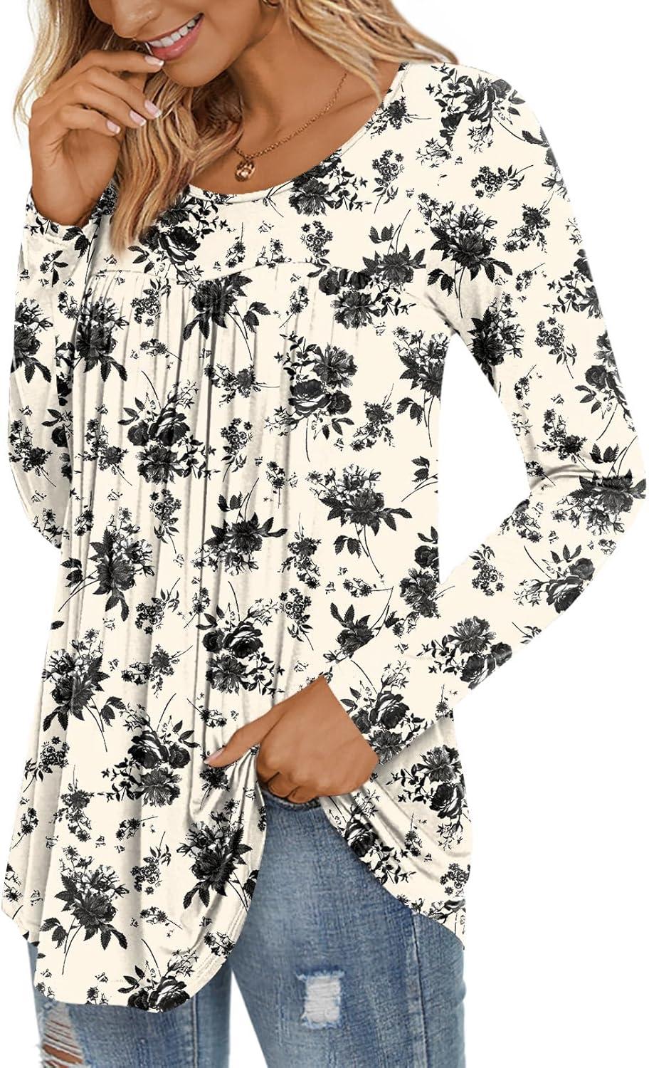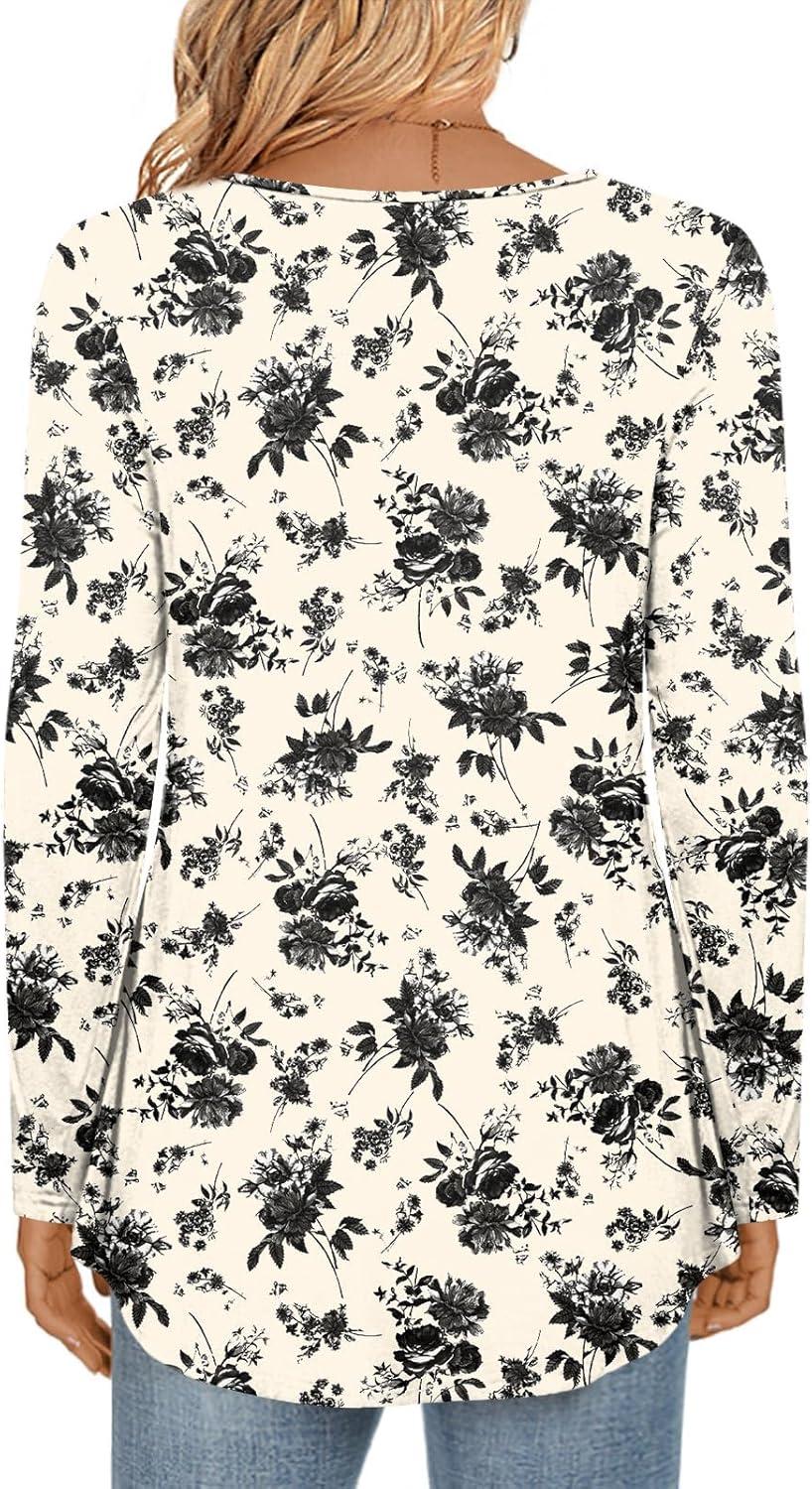 LONGYUAN Women’s Long Sleeve Casual Tunics Tops 2025 Winter Loose Shirts Flare Blouse Comfy Elastic Cute(Hawthorn Flower)