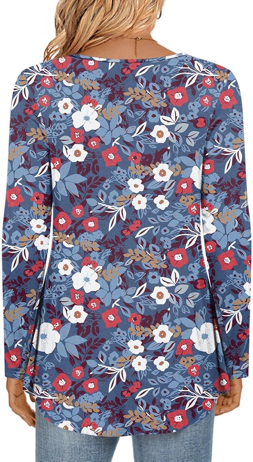 imageLONGYUAN Womens Long Sleeve Casual Tunics Tops 2025 Winter Loose Shirts Flare Blouse Comfy Elastic CuteMixed Blue Redflower