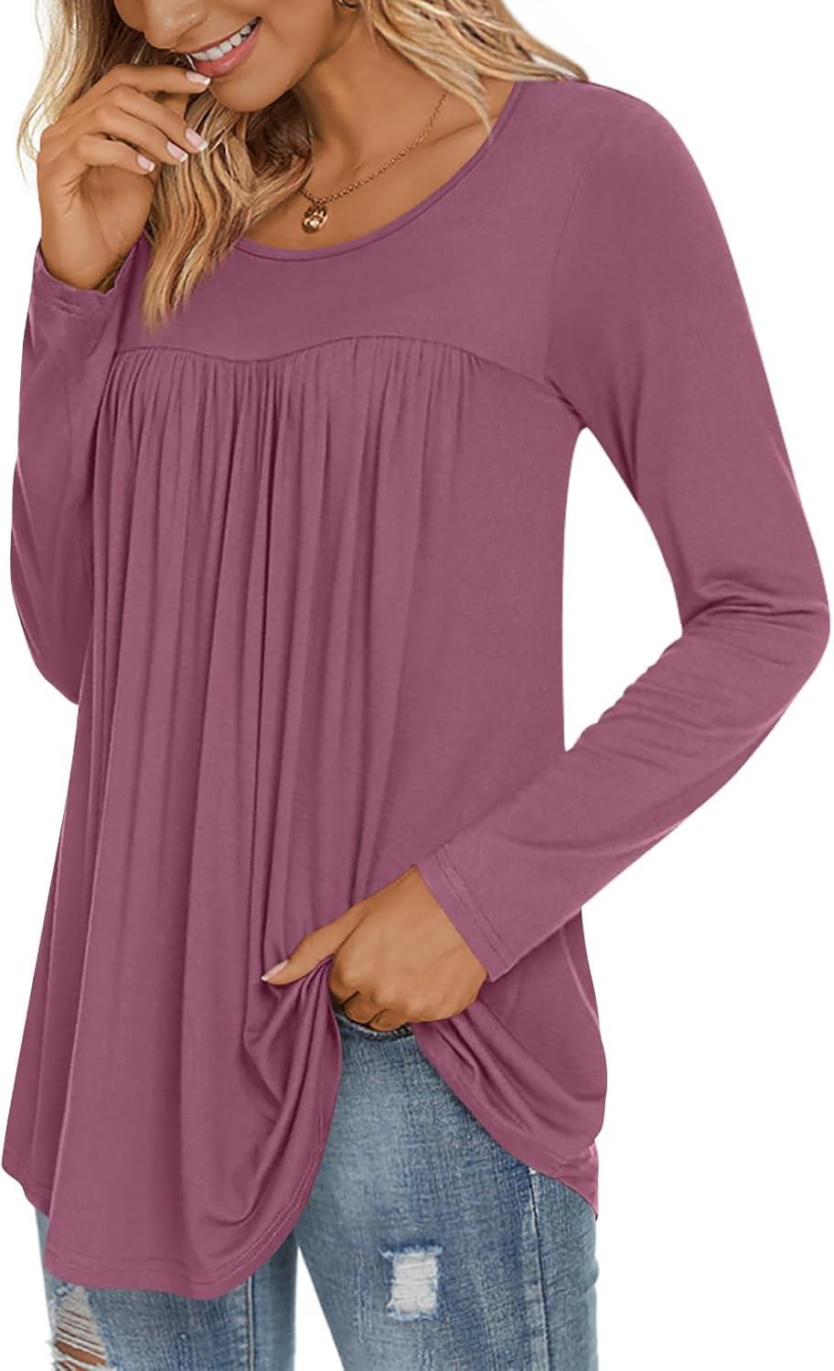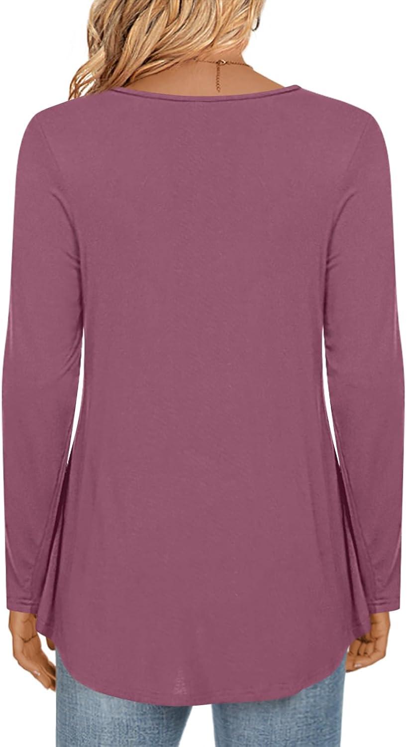 LONGYUAN Women’s Long Sleeve Casual Tunics Tops 2025 Winter Loose Shirts Flare Blouse Comfy Elastic Cute(Purple Red)