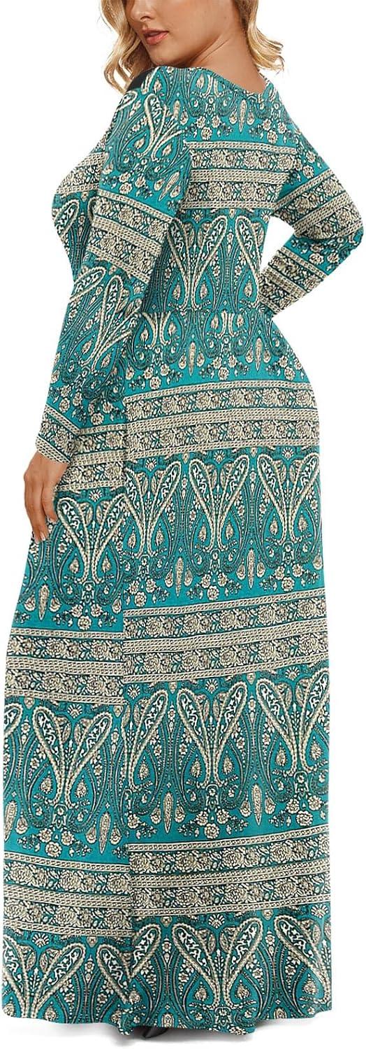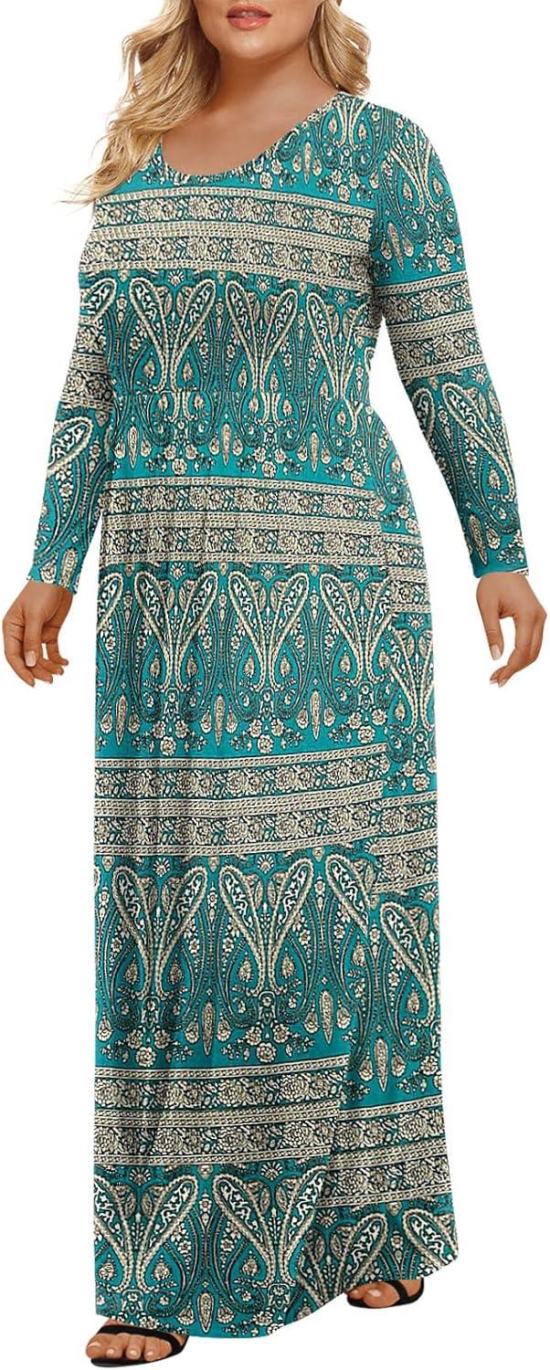 LONGYUAN Women's Plus Size Maxi Dresses for Curvy Women Casual Long Dress XL-6XL(1-blue Khaki)