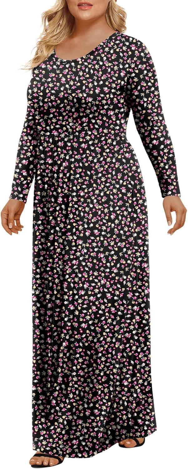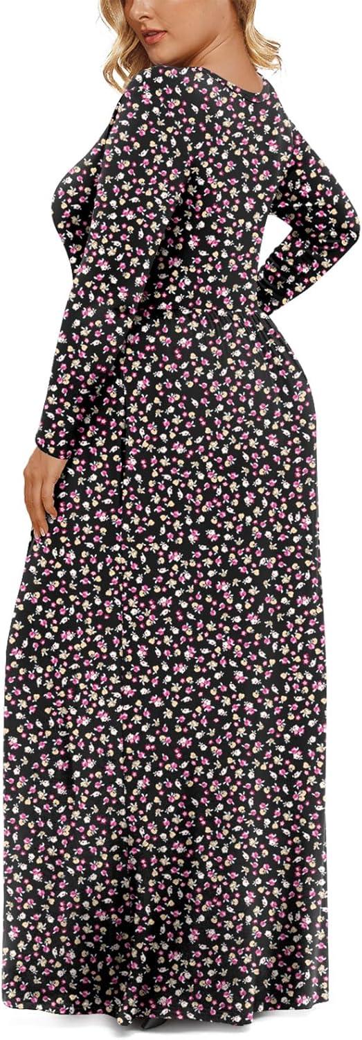 LONGYUAN Women’s Plus Size Maxi Dresses for Curvy Women Casual Long Dress XL-6XL(2-black Litte Fl)