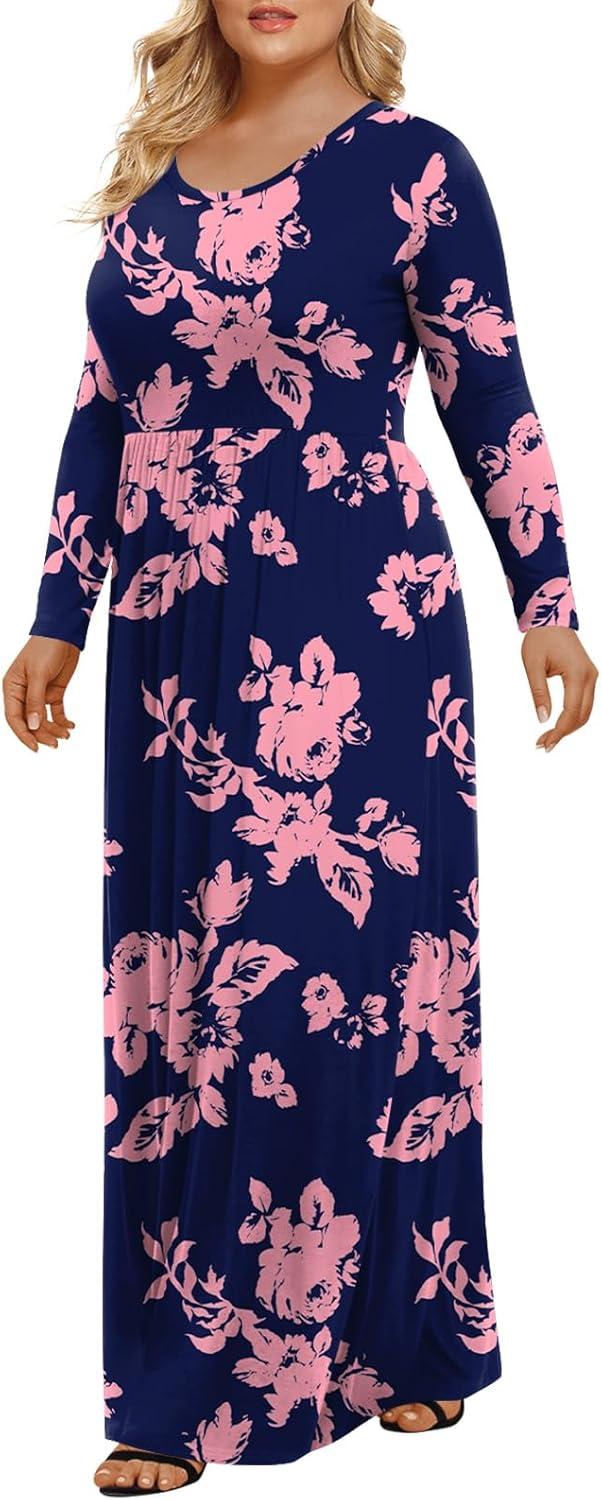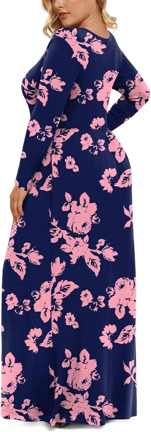 LONGYUAN Women's Plus Size Maxi Dresses for Curvy Women Casual Long Dress XL-6XL(2-rose Silhouette)