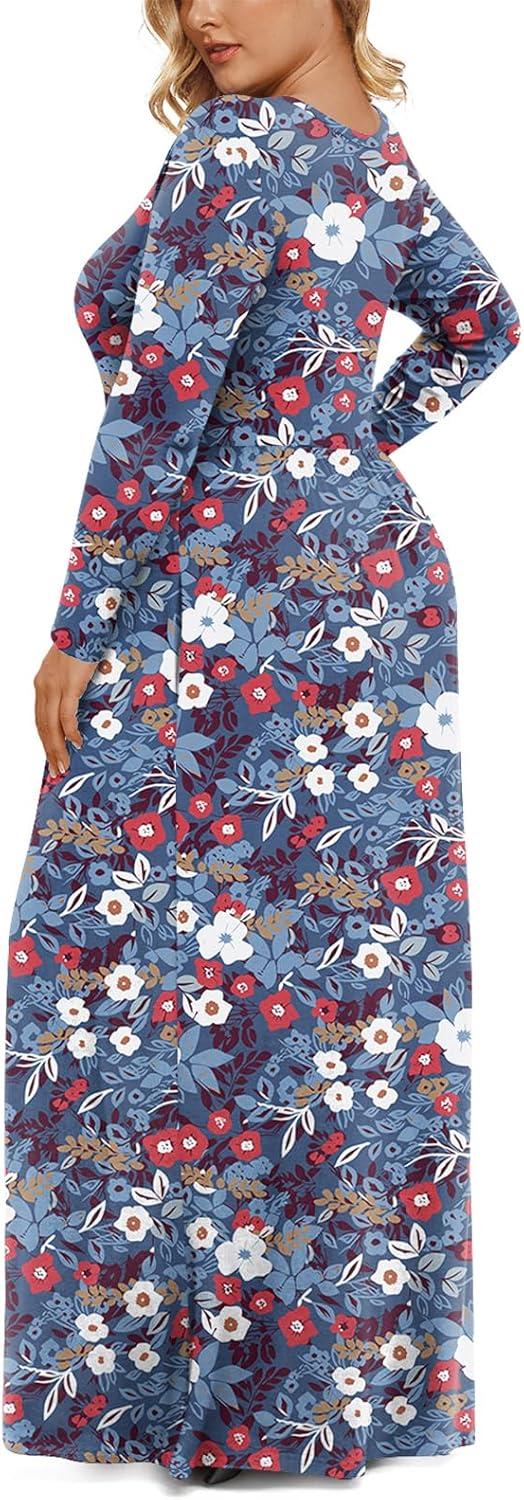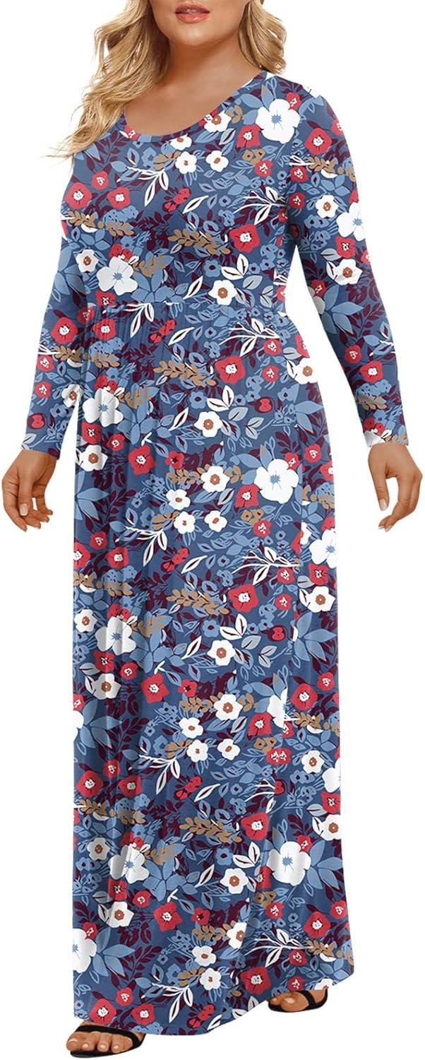 LONGYUAN Women's Plus Size Maxi Dresses for Curvy Women Casual Long Dress XL-6XL(Mixed Blue Red-flower)