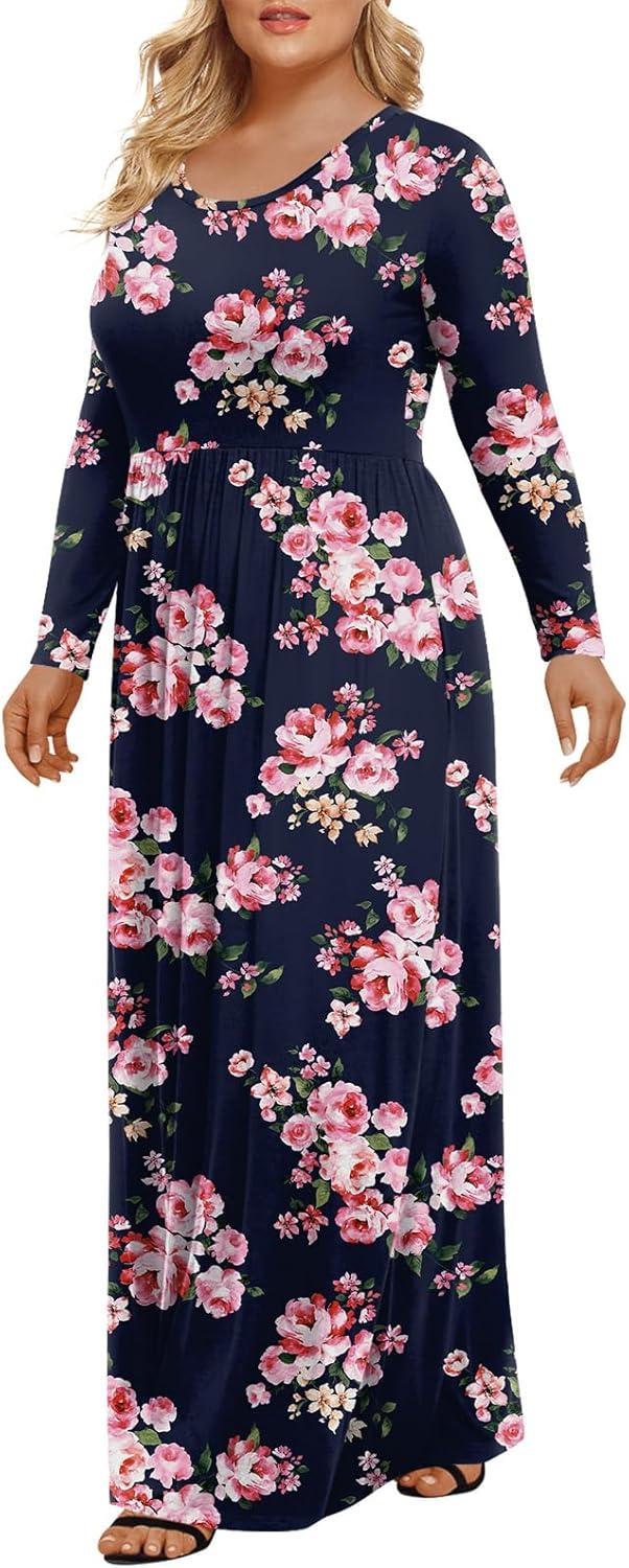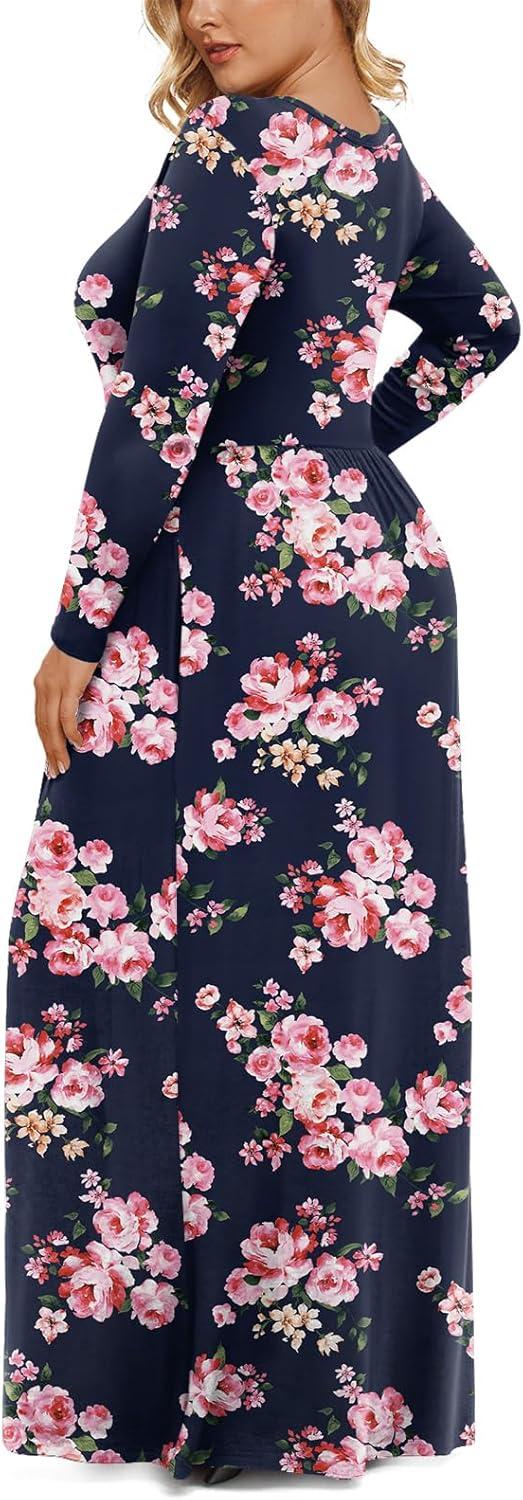 LONGYUAN Women’s Plus Size Maxi Dresses for Curvy Women Casual Long Dress XL-6XL(Purplish Blue Fl)