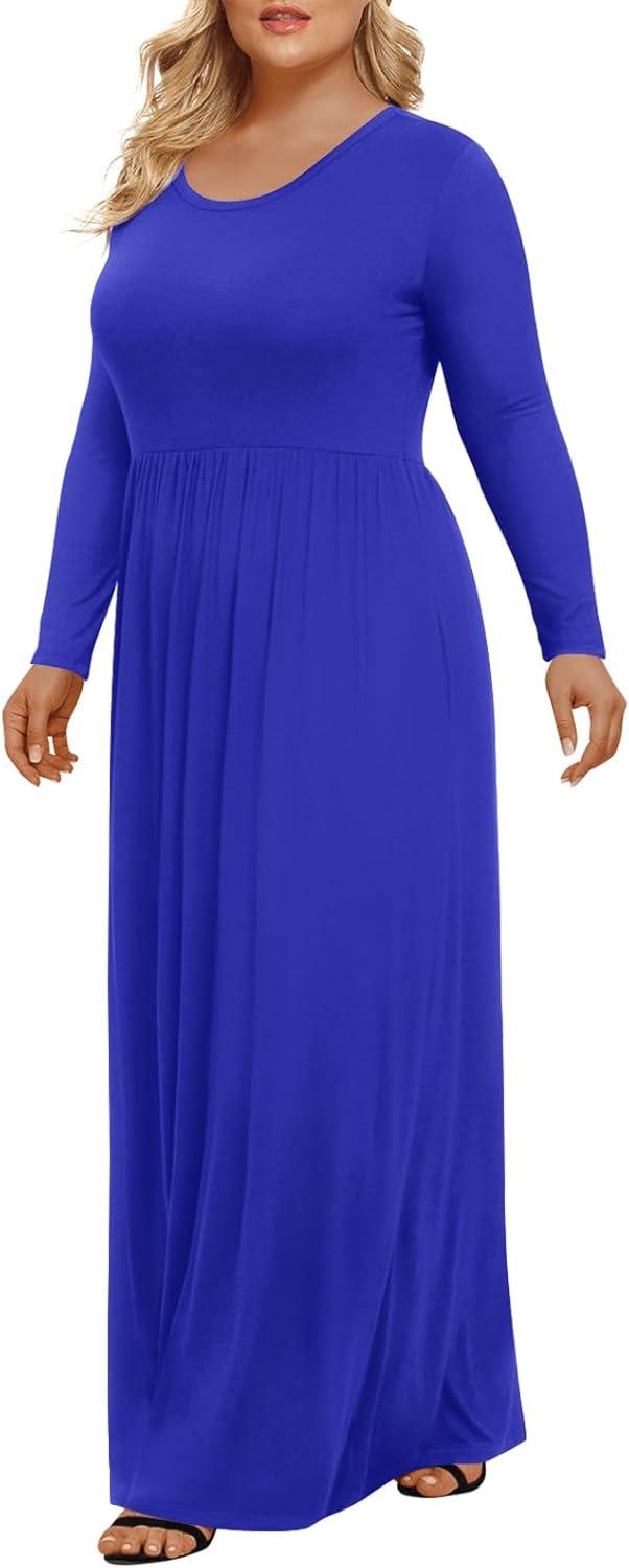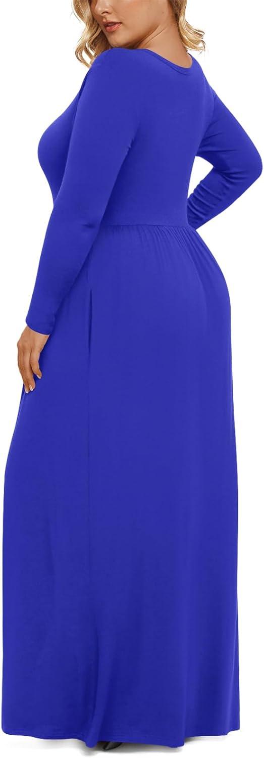 LONGYUAN Women's Plus Size Maxi Dresses for Curvy Women Casual Long Dress XL-6XL(Royal Blue+sleeve)