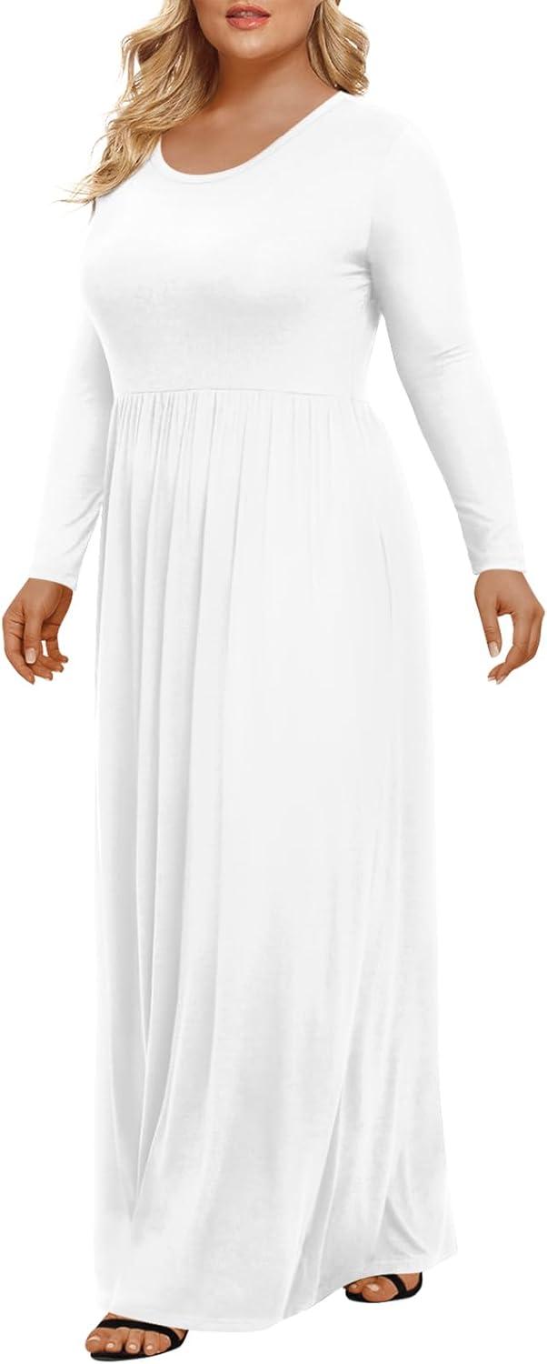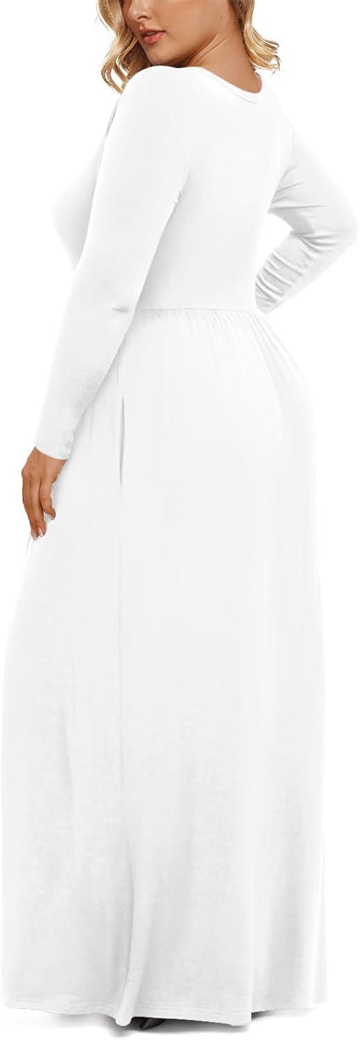 LONGYUAN Women's Plus Size Maxi Dresses for Curvy Women Casual Long Dress XL-6XL(White+sleeve)