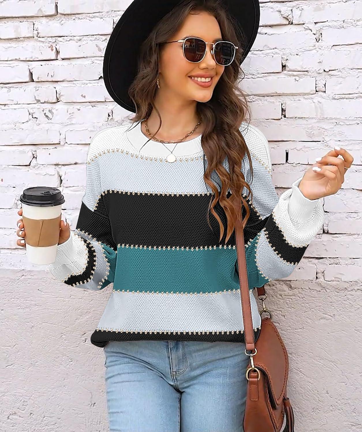 Get up to 70% off on Womens Sweaters Fall 2025 Fashion Long Sleeve Color Block Oversized Sweater Trendy Casual Crew Neck Knitted Tops Pullover(Color Blue) styles during our end-of-season clearance event.